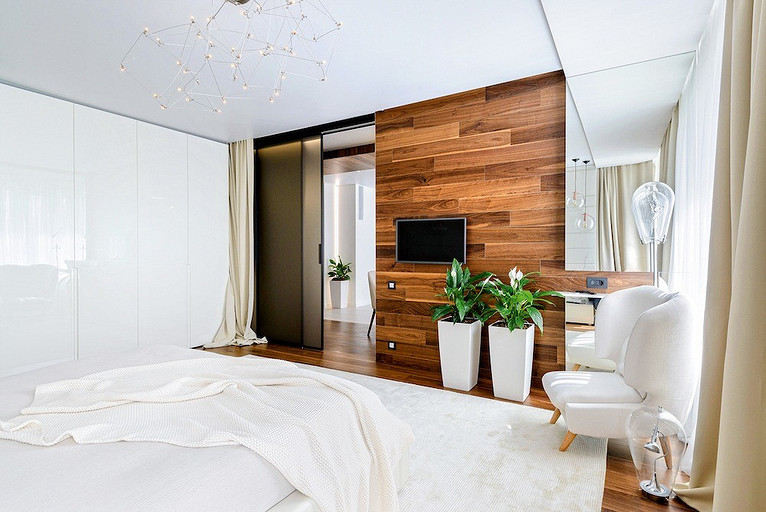 - Мебель: шкаф встроенный Raum, панель — паркетная доска (орех) Miester