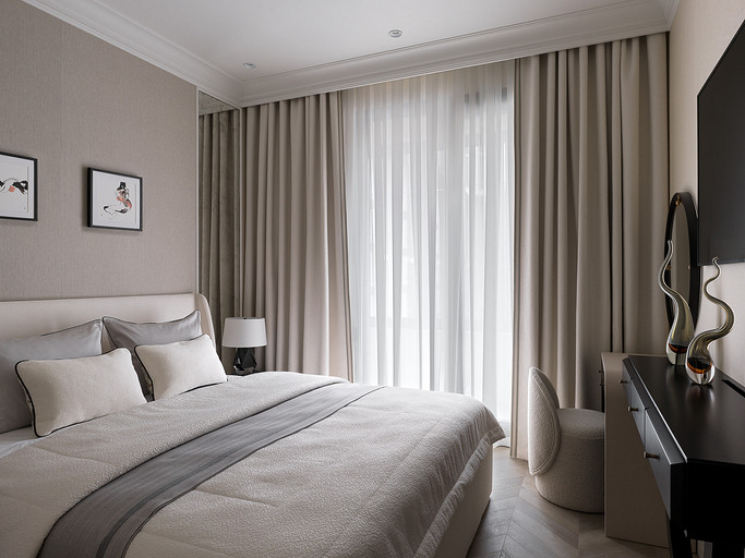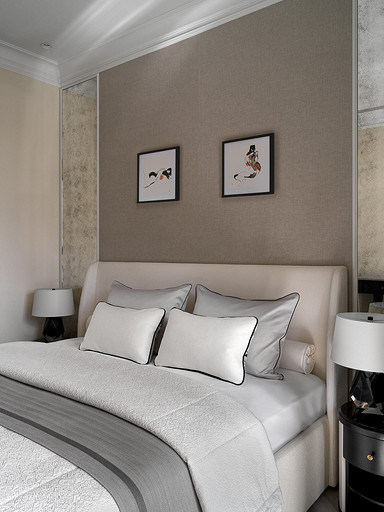 - Текстиль: обивочные ткани Dedar, Pierre Frey, Sahco, покрывало и портьеры в спальне Deko Textile