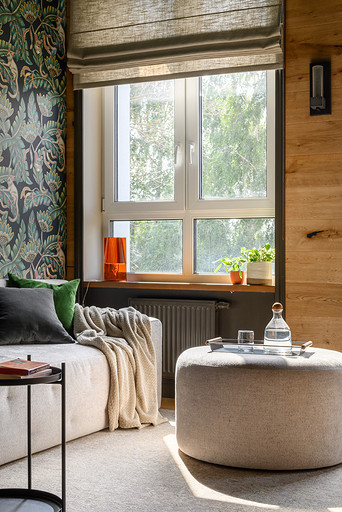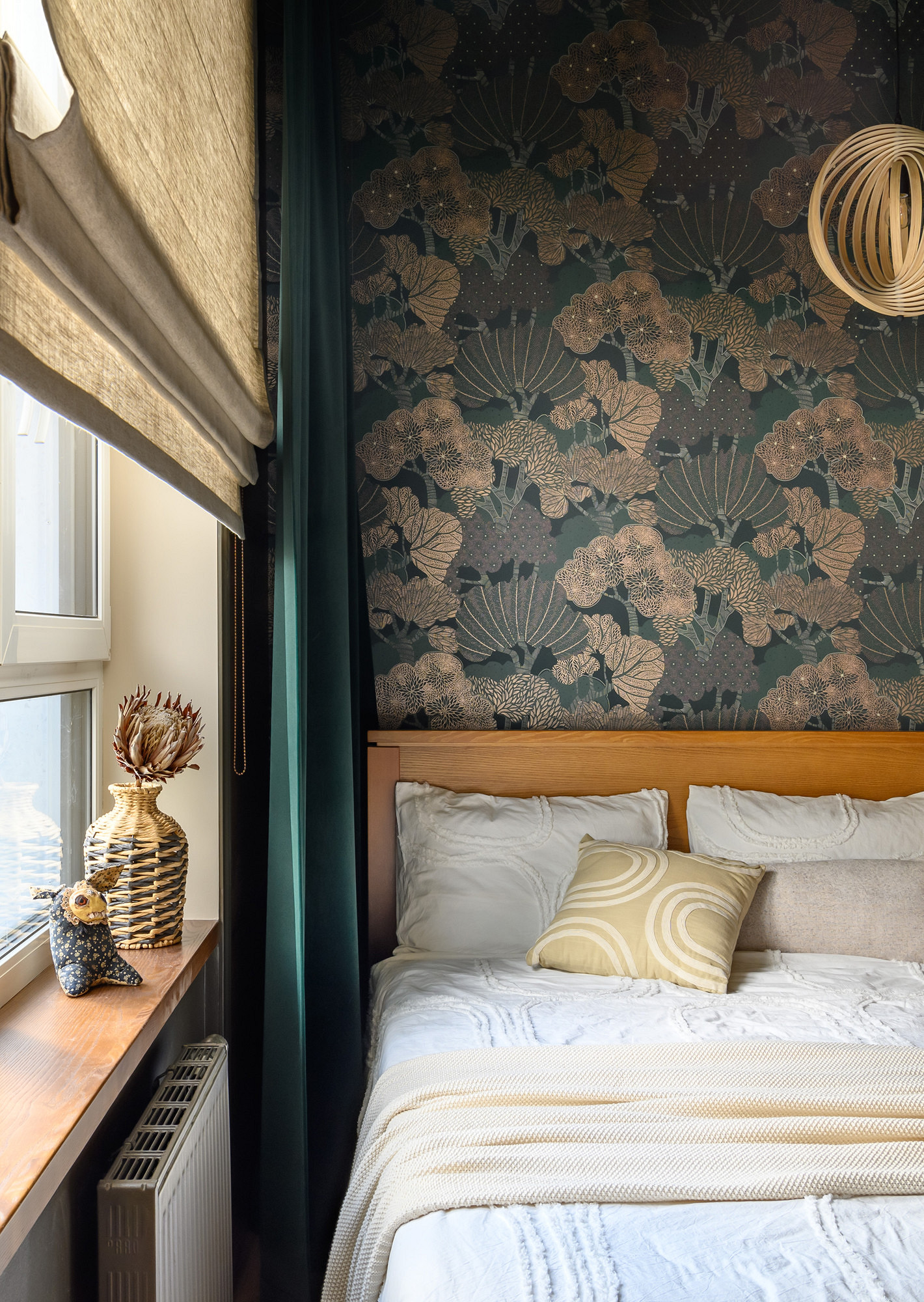 - Текстиль: плед De Dimora, шторы и подушки NestHome