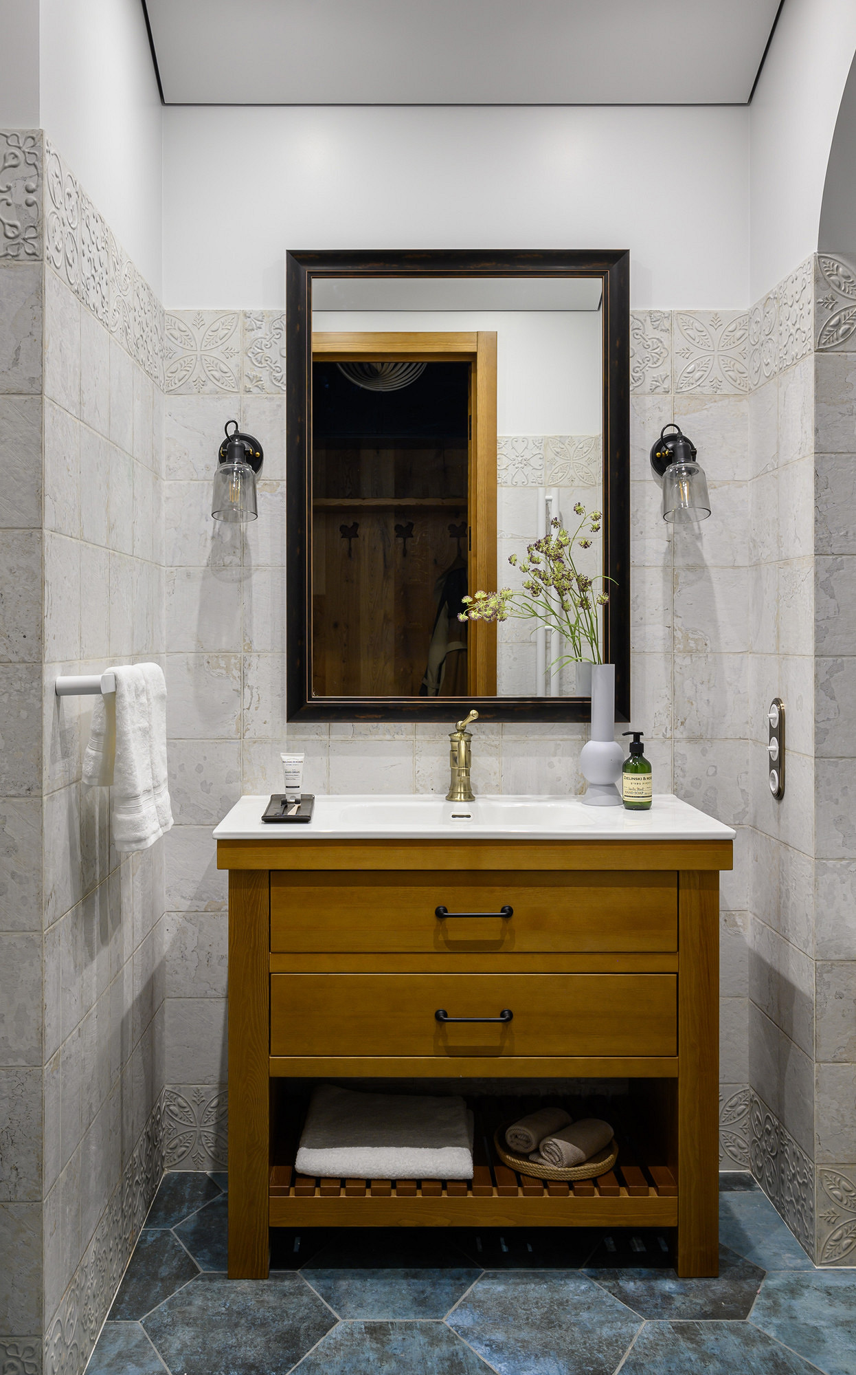 - Стены и пол: керамогранит ZYX