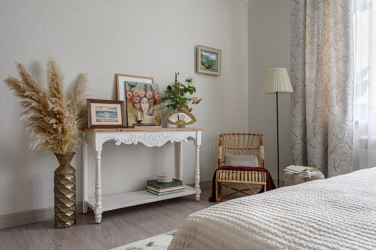 - Мебель: кровать и шкаф divan.ru, тумбы ИКЕА, кресло La Redoute