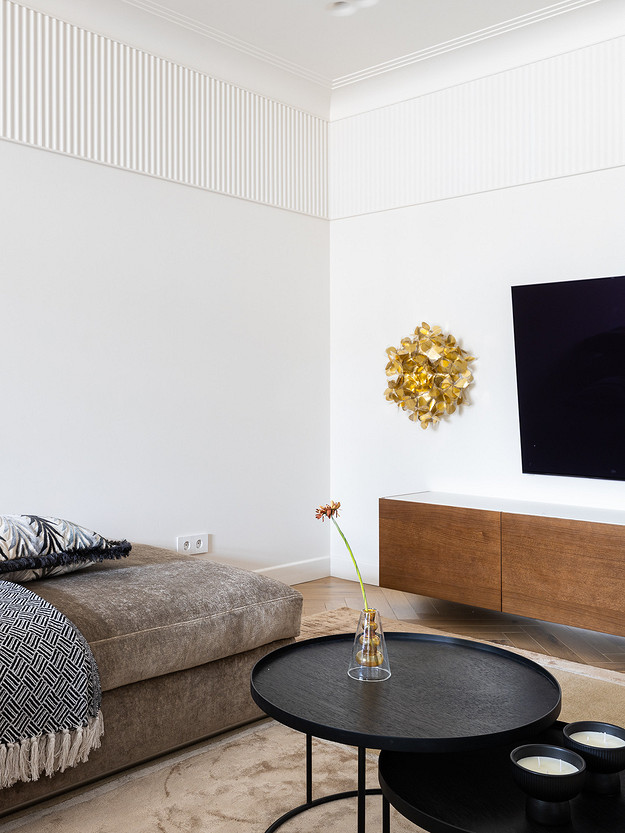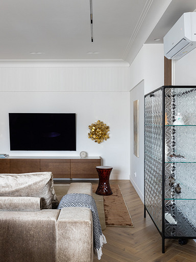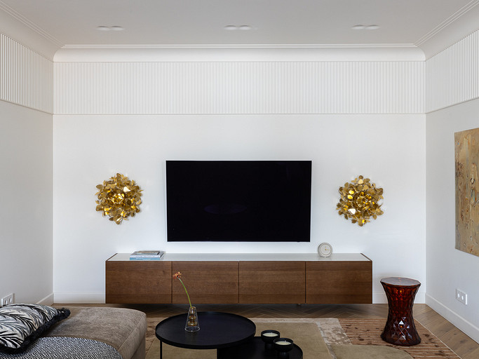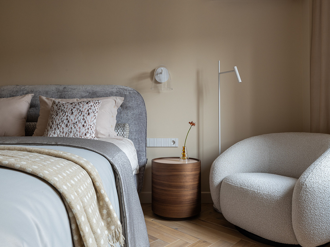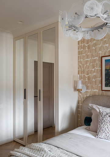 - Картины: в спальне — Ариадна Авсахова, в прихожей — Ильдар Гильманов, в гостиной и на кухне — Расих Ахметвалиев, галерея annartproject