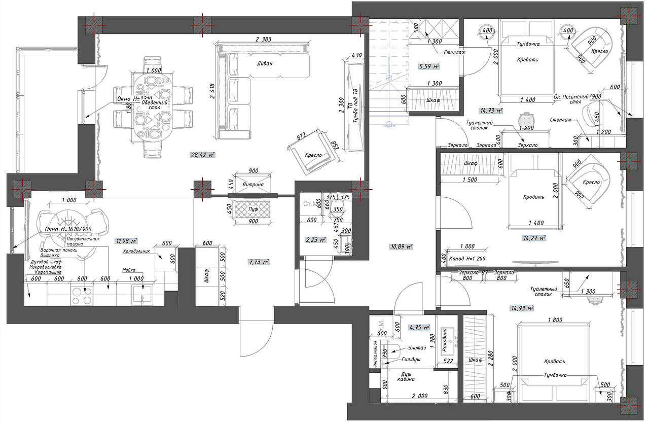 | Гостиная | – | 28,4 м2 |