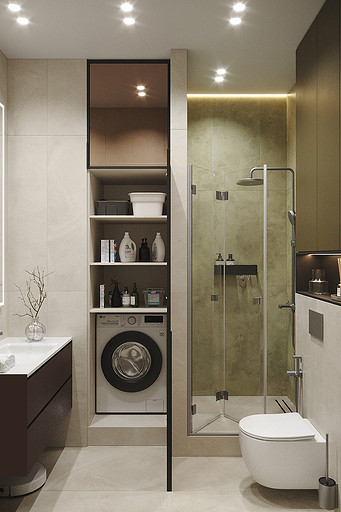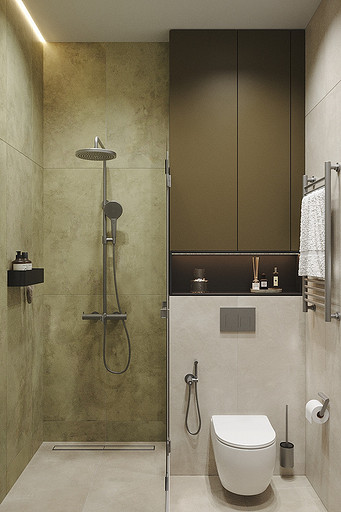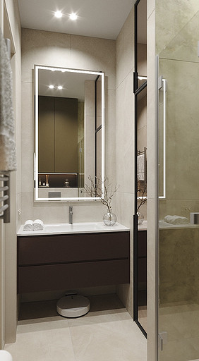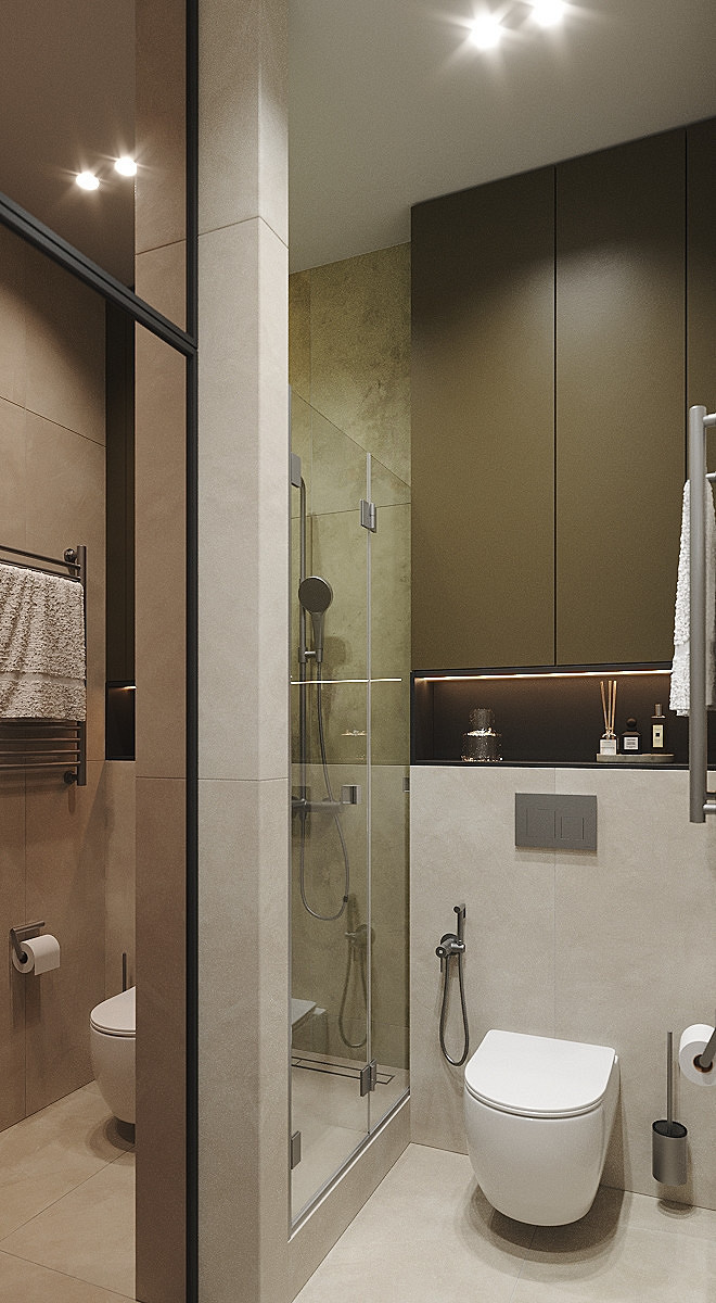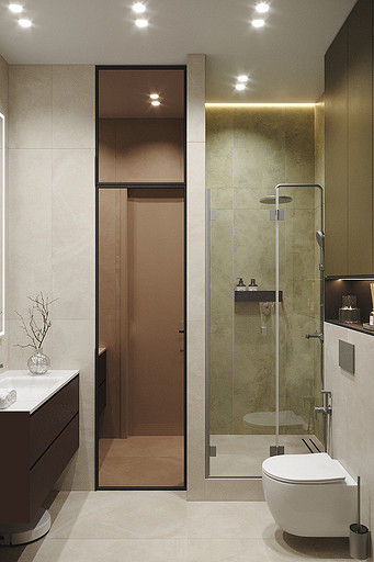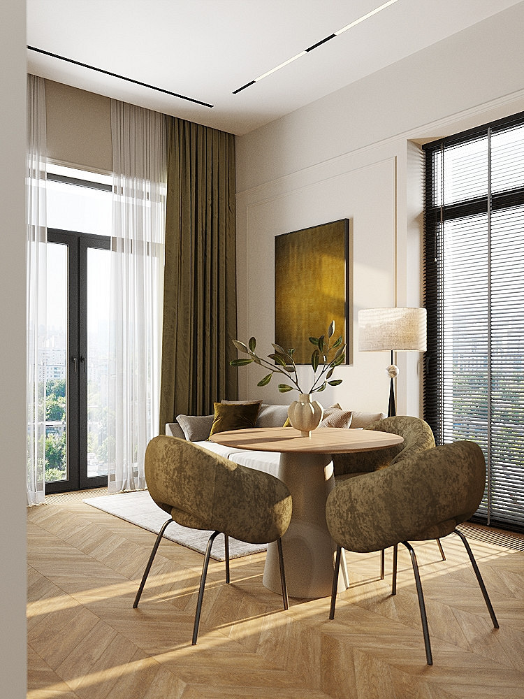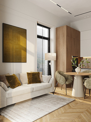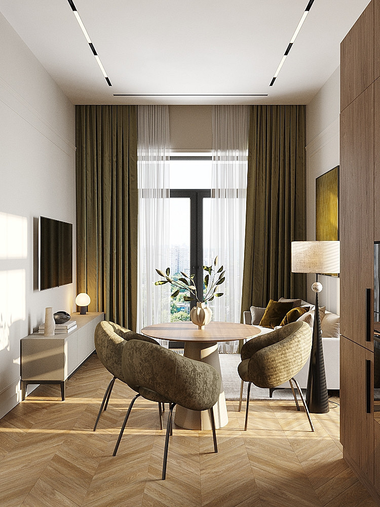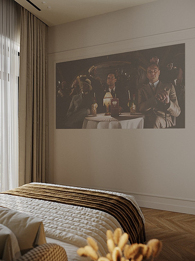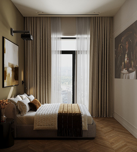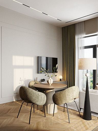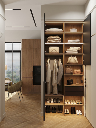 Это спокойная, изящная квартира, созданная под сдачу. Запланированы все необходимые зоны, места для хранения, отдыха и продумано хорошее техническое наполнение.