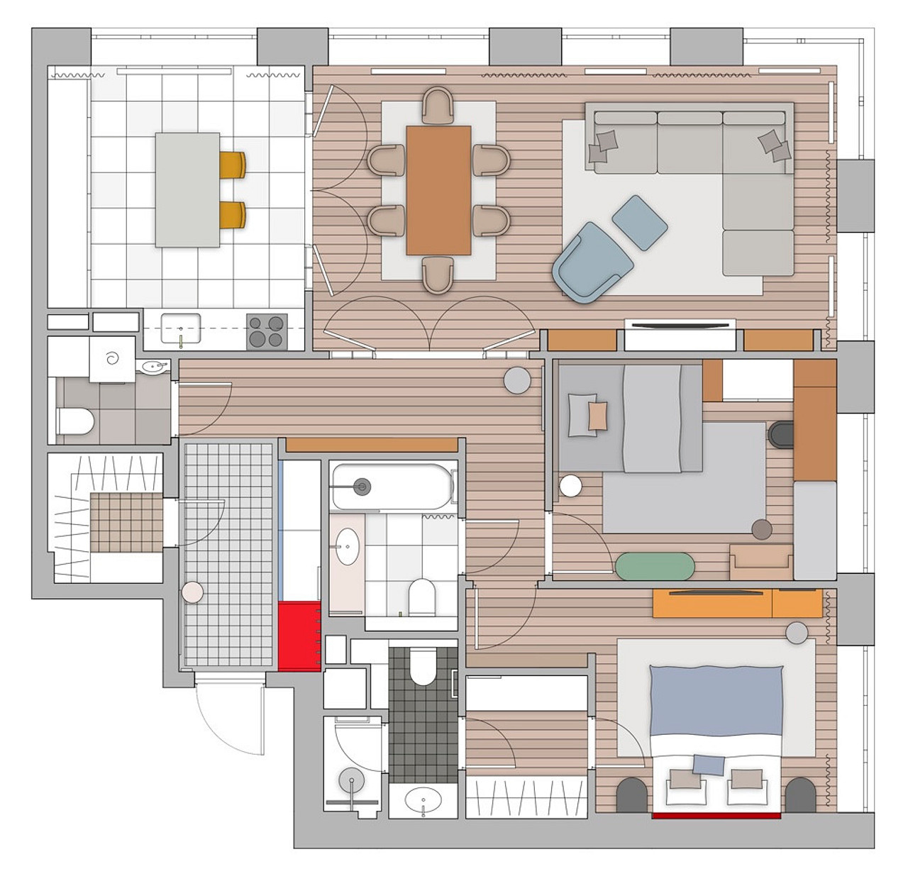 Реализованный проект трехкомнатной квартиры площадью 98,4 м2