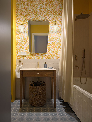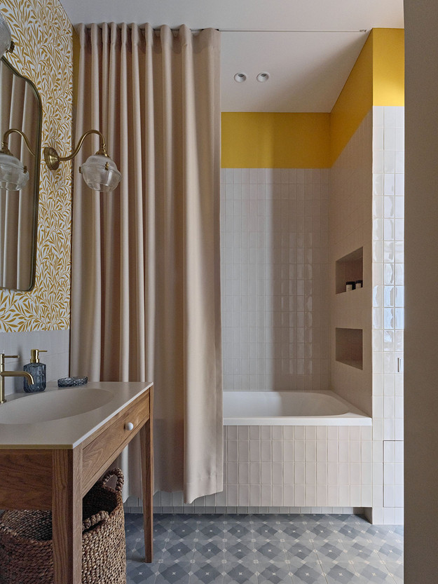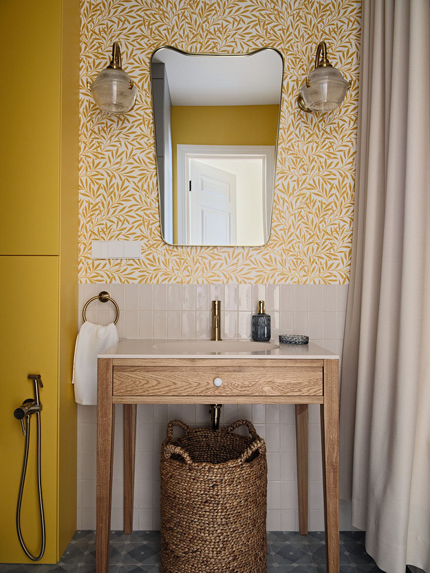 - Стены: краска Swiss Lake, обои Milassa, Morris