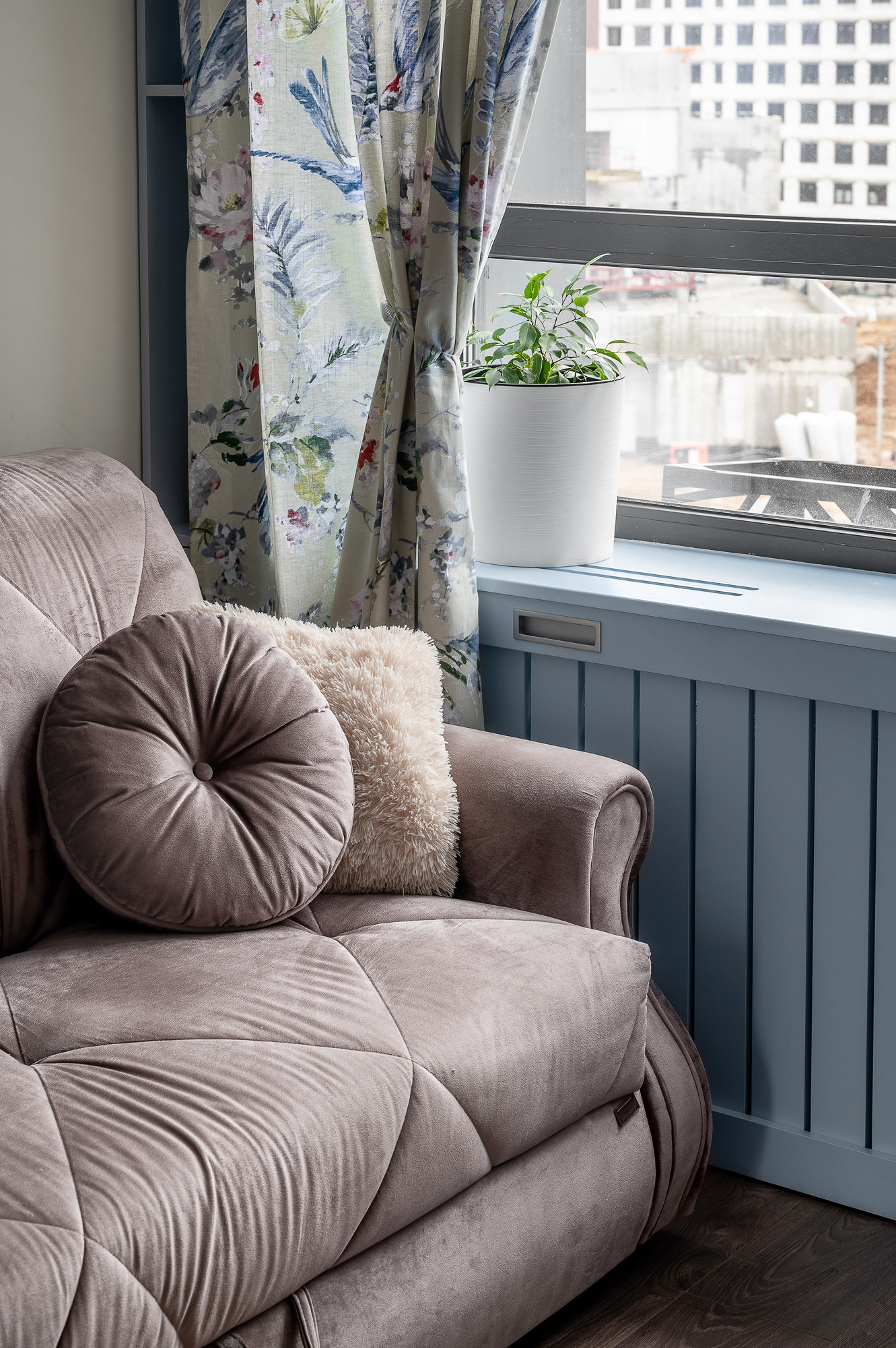 - Мебель: корпусная Verno (на заказ), обеденный стол divan.ru, стулья Anni Haus, кровать и диван сделаны на заказ, тумба Brevita