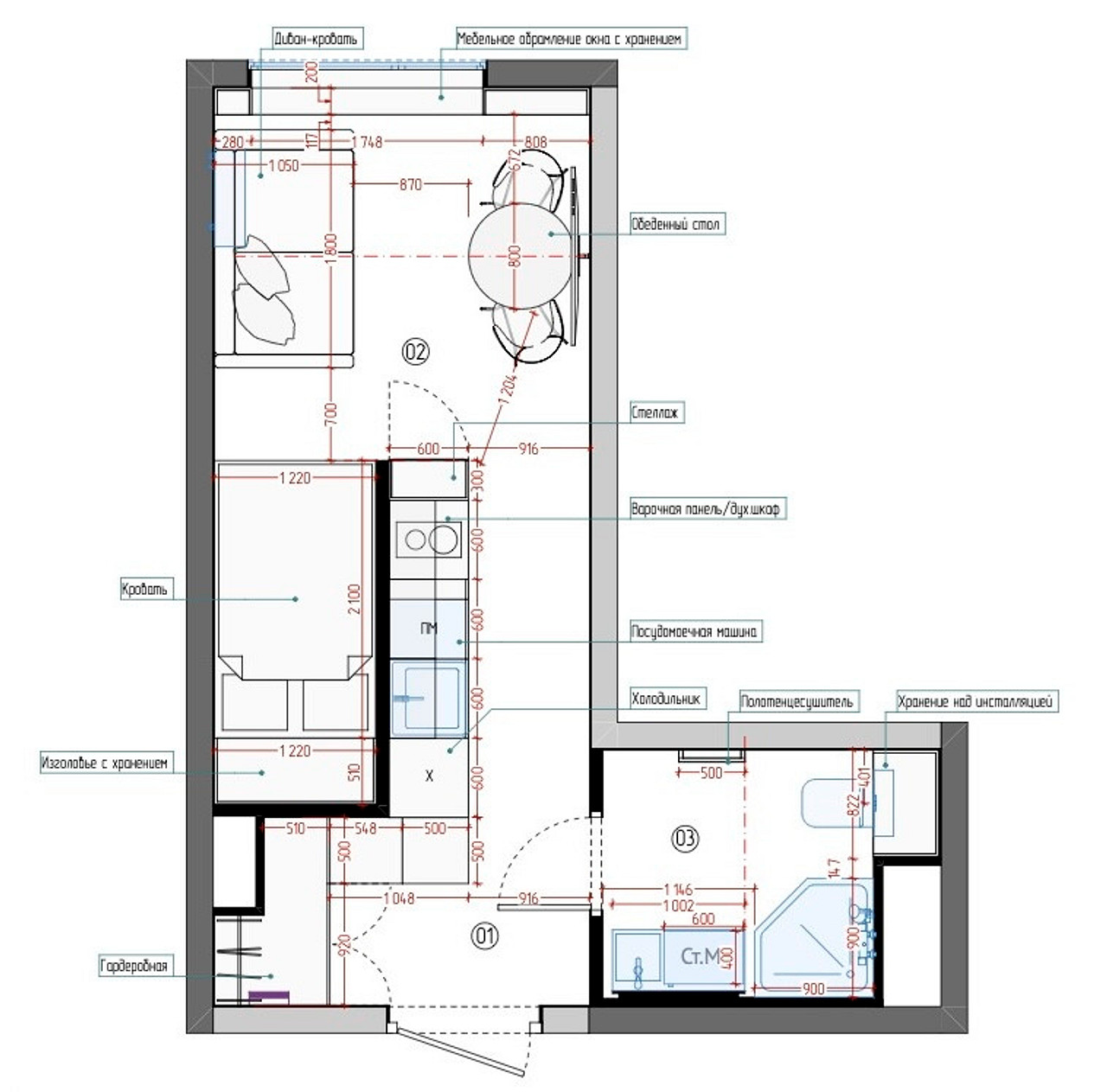 Реализованный проект квартиры-студии площадью 23,2 м2