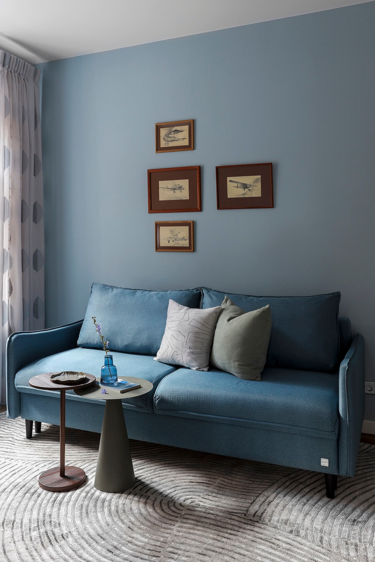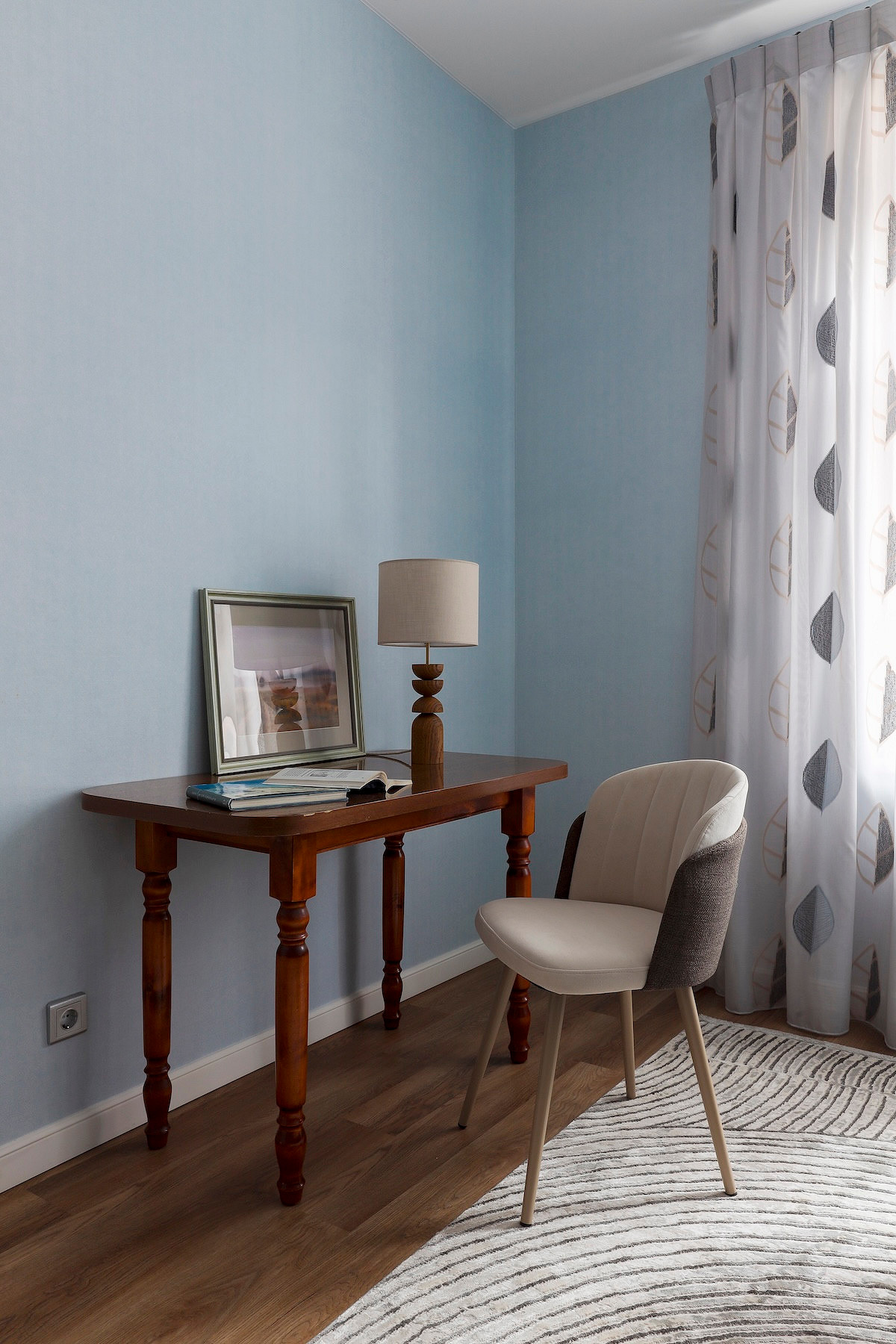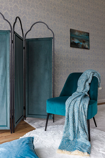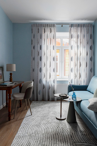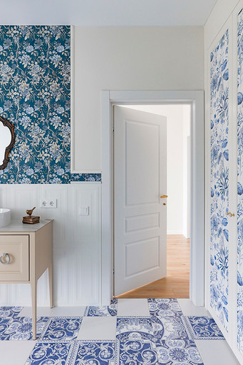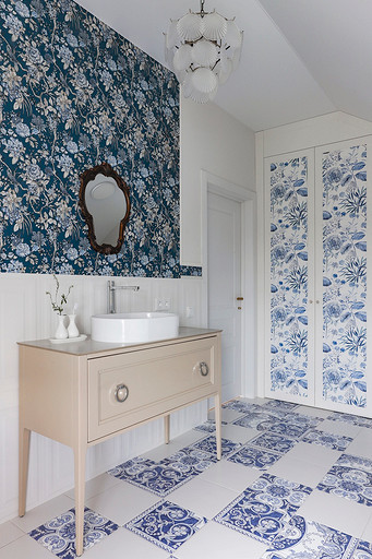 - Стены: краска Swiss Lake, обои Loymina