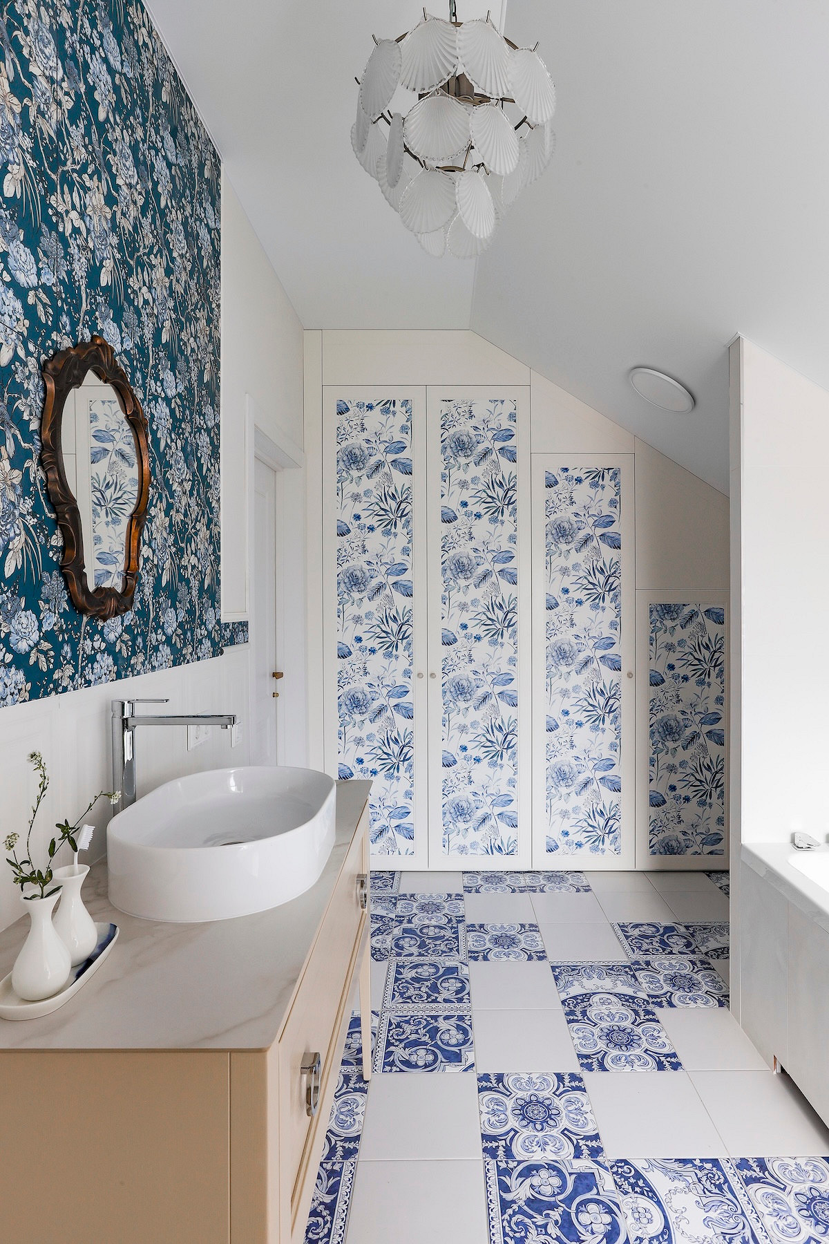 - Мебель: кровать «Ангстрем», кресло в спальне Top Concept, мебель в ванной Kerama Marazzi