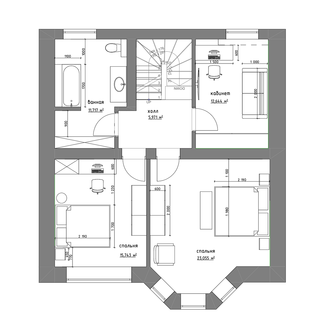 | Кабинет на втором этаже | – | 12,6 м2 |