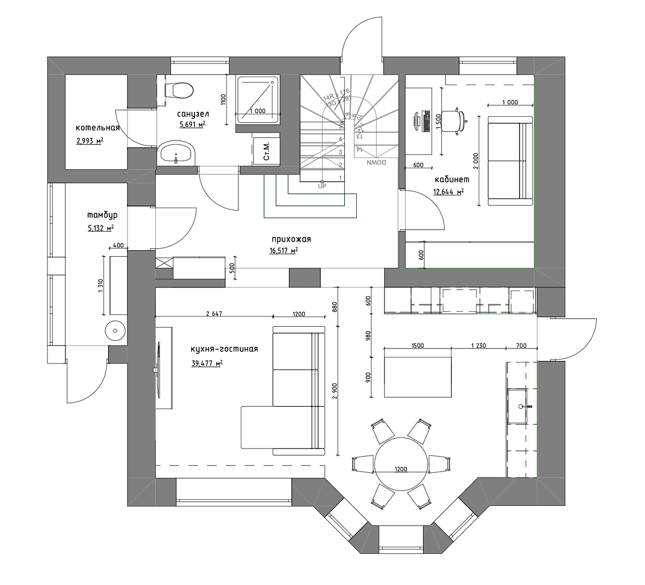 | Кухня-гостиная | – | 39,5 м2 |
