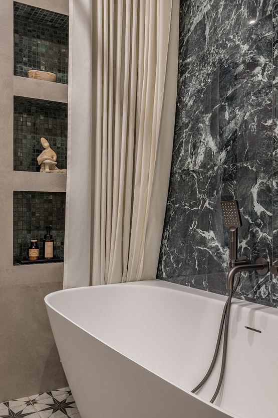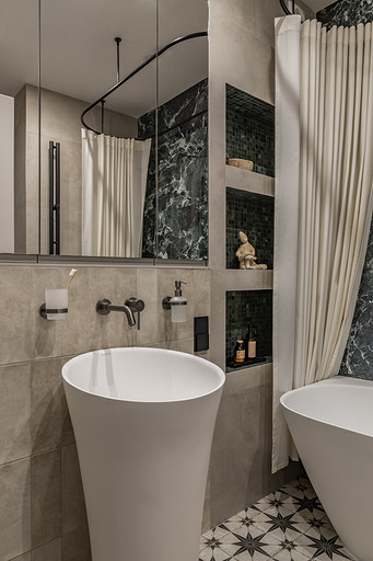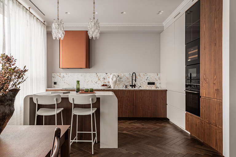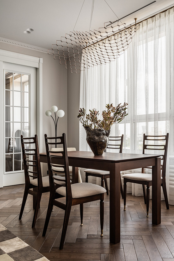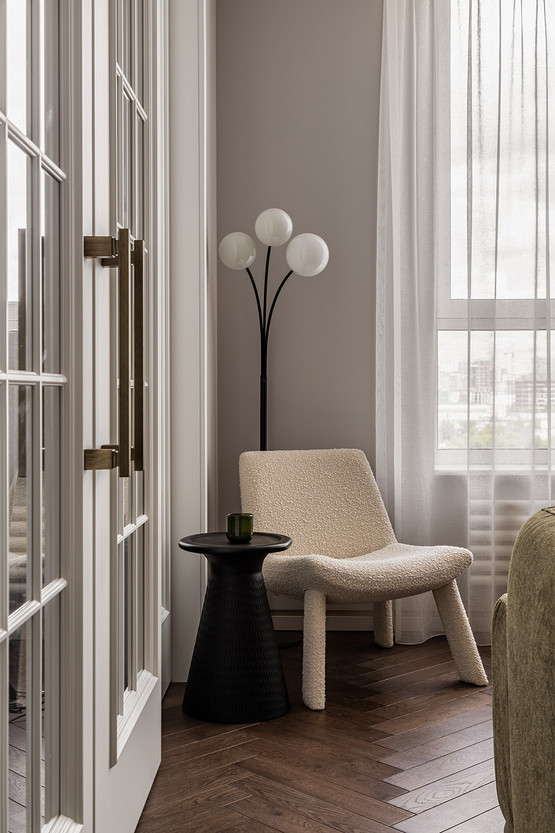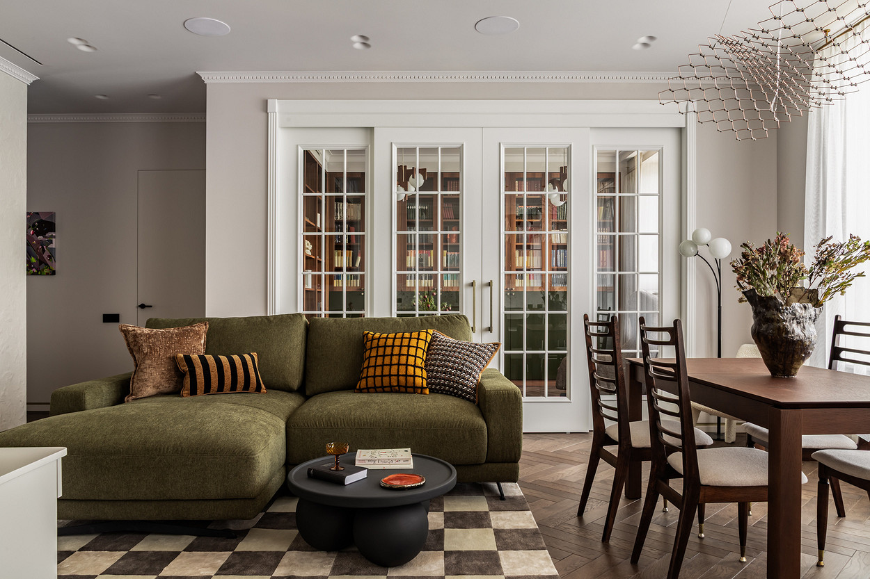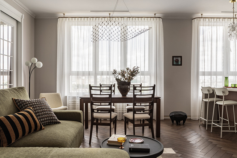 Основой и вдохновением к этому проекту служил любимый фильм заказчицы «Цвет гранта». В нем собраны этнические мотивы Центральной Азии, «неидеальная идеальность» окружающего нас мира, утонченность форм и вместе с тем буйство красок. Словно из разных нитей памяти нам удалось сплести в один красочный ковер воспоминания детства, путешествия юности и ритм современной жизни мегаполиса. Как и всегда, мы трепетно относимся к ценным семейным реликвиям, вещам с историей, которые по крупицам удается собрать по мере подготовки и реализации проекта. Мы реставрируем, привозим и восстанавливаем предметы, которые будут на протяжении долгой жизни служить маркерами памяти для наших заказчиков. Так у нас получился проект о большом и очень добром сердце. Проект стал финалистом конкурса Best Russian Design Awards в номинации «Modern Home Awards» (интерьер от 100 до 130 кв.м.) и лауреатом Платинового Диплома международной премии Золотой Треззини.