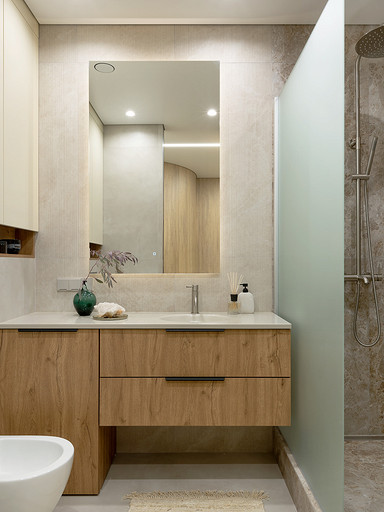 Дизайнер оформила интерьер квартиры в теплых тонах с ненавязчивыми акцентами и современным комфортом. Читать далее...