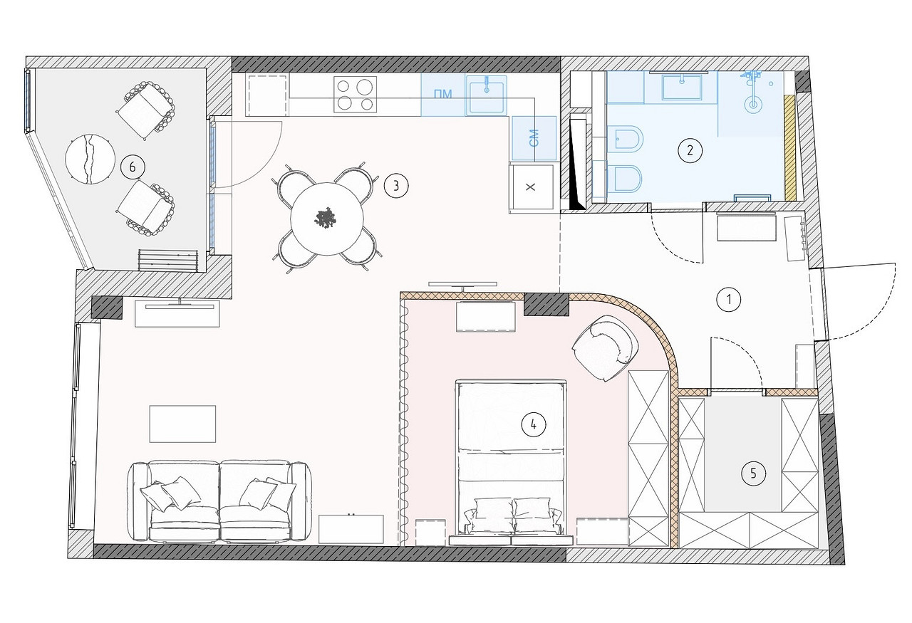 Реализованный проект двухкомнатной квартиры площадью 60,4 м2