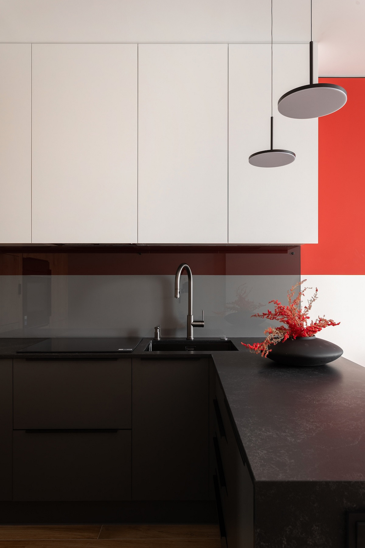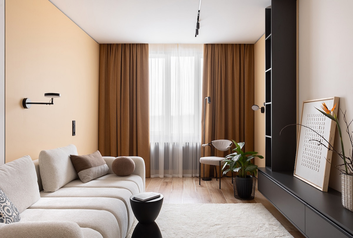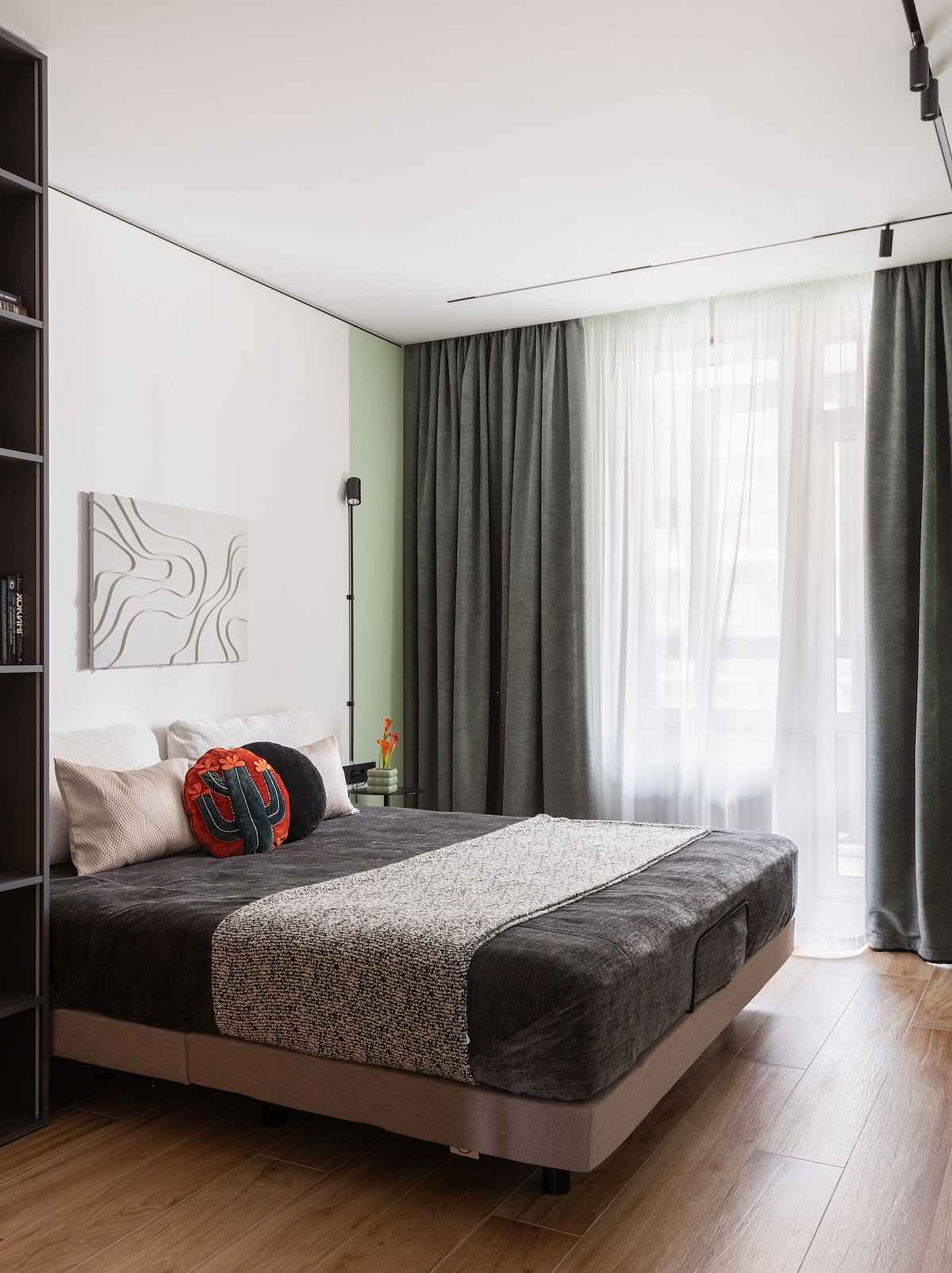 - Мебель: кровать и диван «Аскона», обеденный стол SK Design, стулья La Redoute, Unikamoblar, прикроватный столик Ominimalism, вешалка в прихожей Pianowood, корпусная мебель Air Mebel