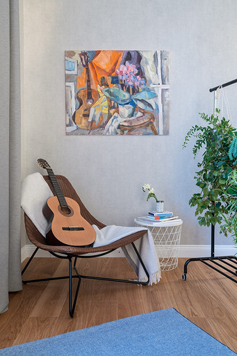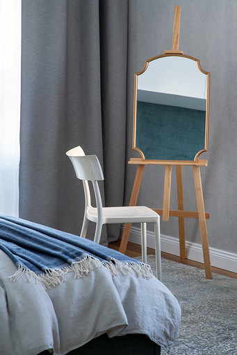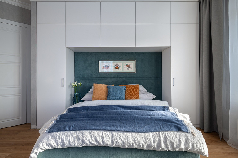 - Мебель: кресло Cosmo, кресло IKEA, кровать SK-Design, мебель на заказ по эскизам автора проекта