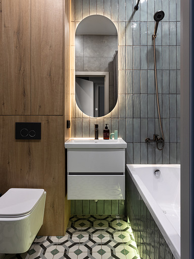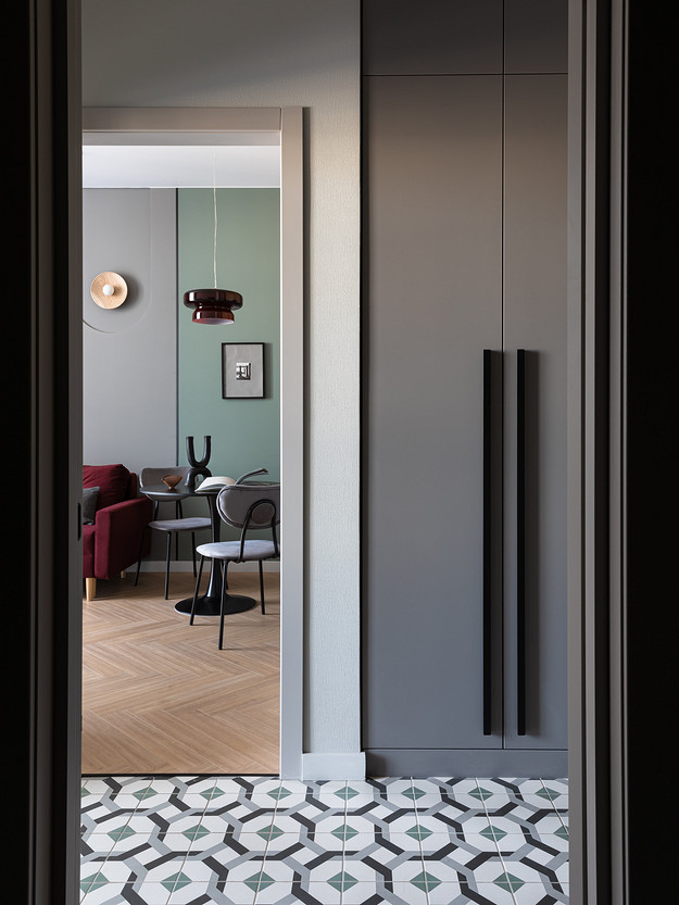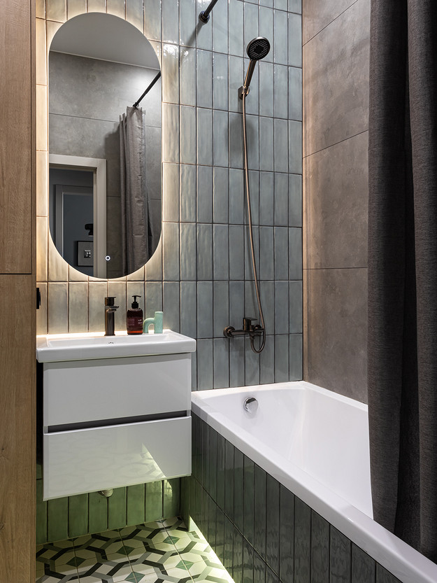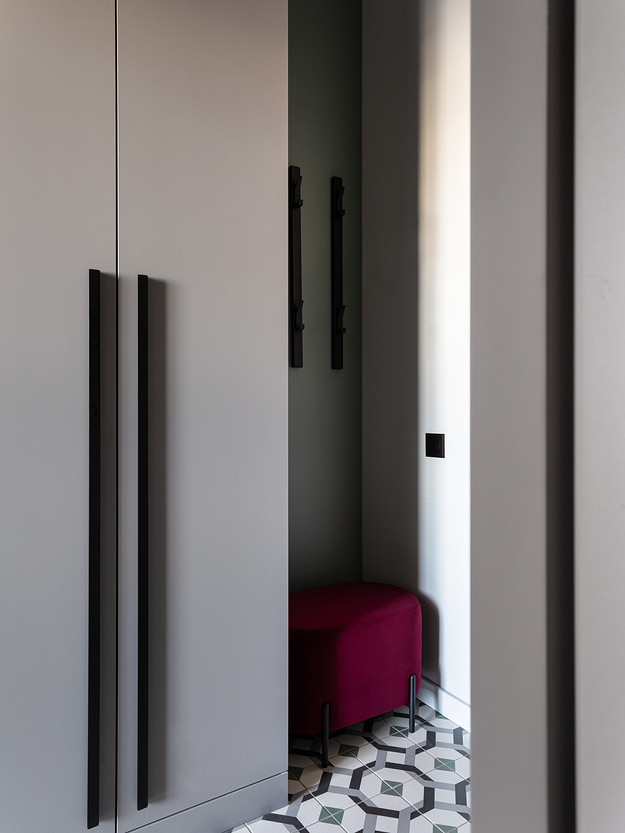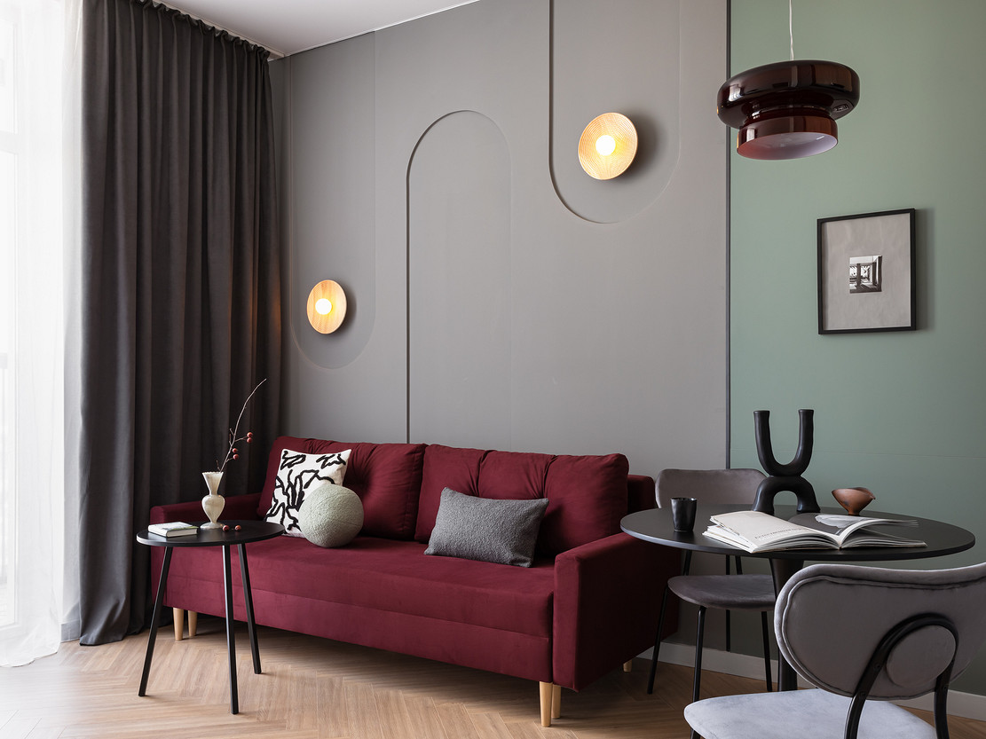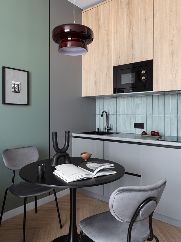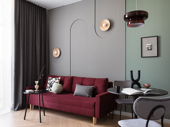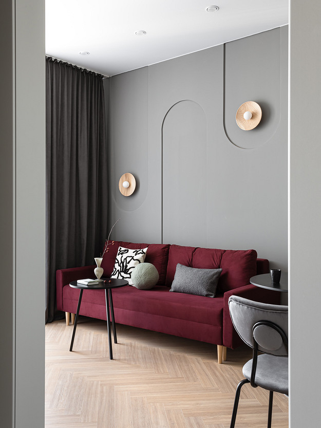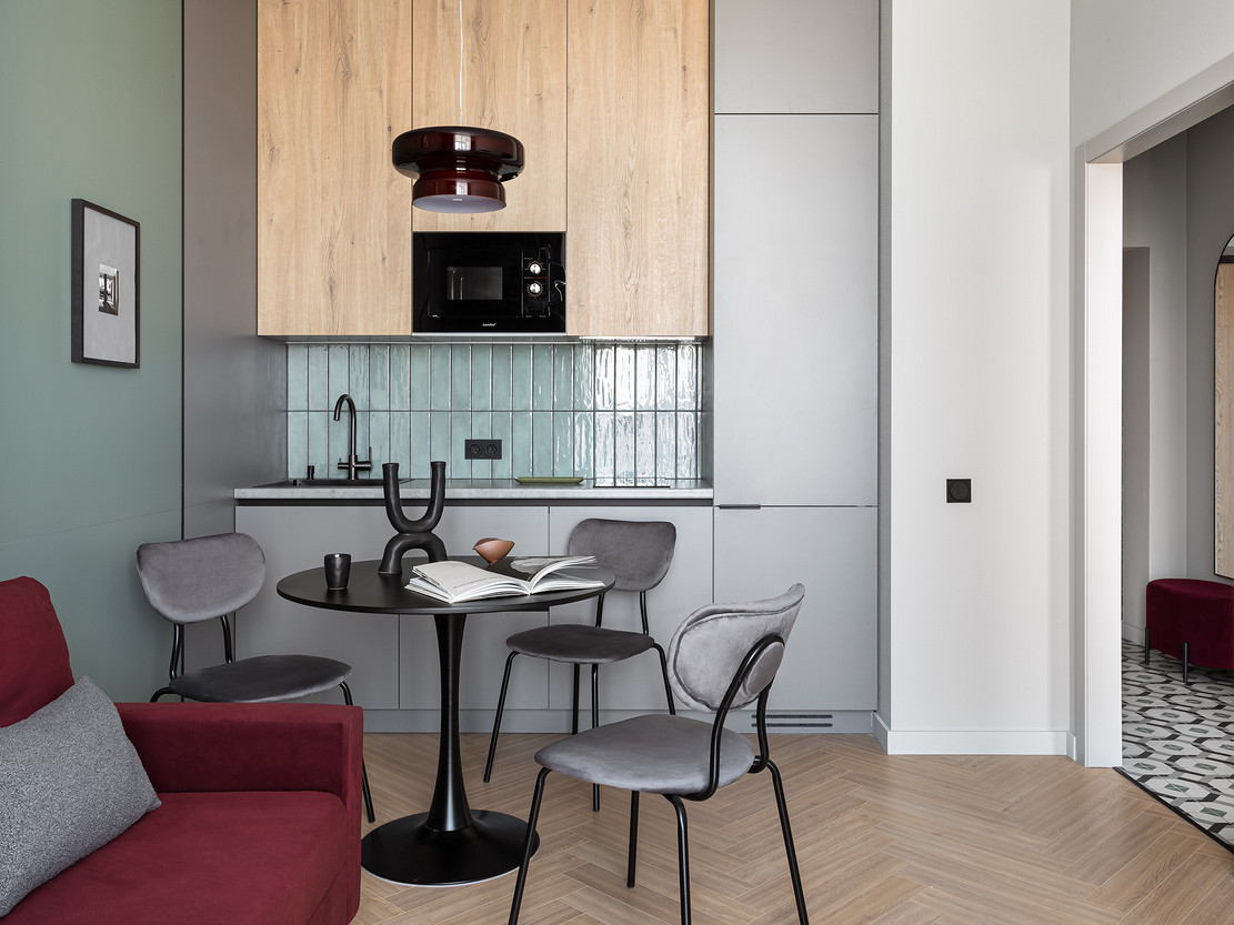 Проект для посуточной аренды с перспективой «для жизни». Когда интерьер делается не только под аренду, а под будущих хозяев, подход становится совсем другим. Здесь было важно не просто сделать красиво, а создать пространство, в котором будет комфортно жить. Пожелания заказчицы: «не как у всех» , максимум стен закрыть ЛДСП-панелями, предусмотреть место для сушки белья. Мы продумывали каждый сантиметр, каждую фактуру, каждый оттенок. Проект был непростым, но результат получился именно таким, каким и должен быть: стильным, функциональным и очень уютным. 3-метровые потолки, 25-й этаж и потрясающий вид из окна добавили проекту особого характера и вау-эффекта.