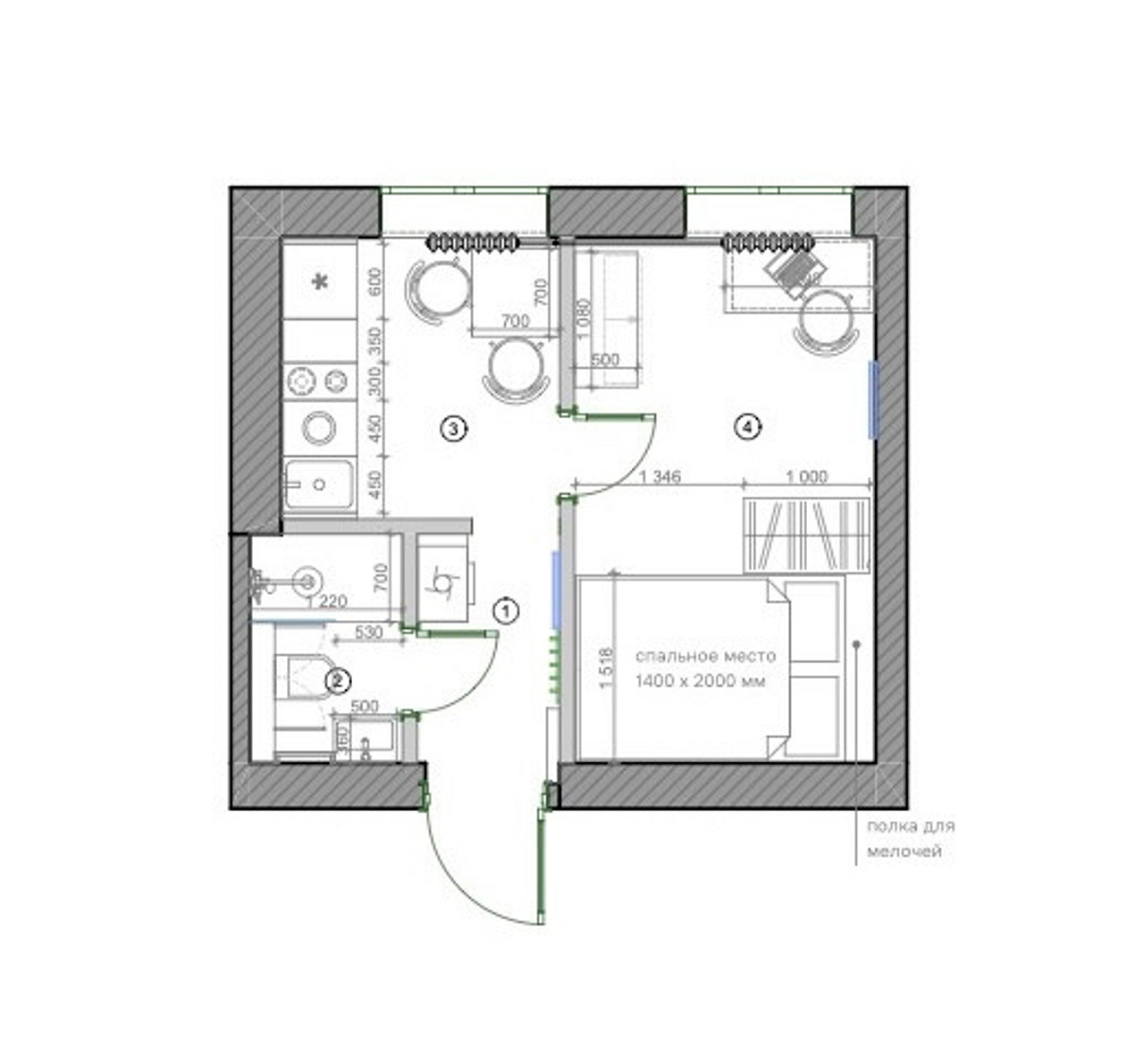 Реализованный проект однокомнатной квартиры площадью 19,6 м2