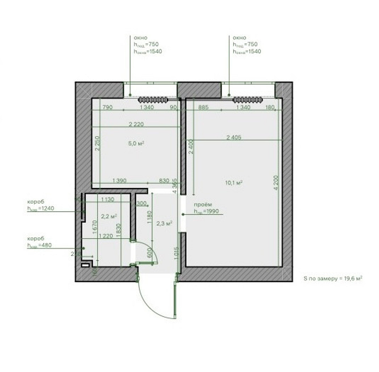 | Общая площадь | 19,6 м2 | 19,6 м2 |