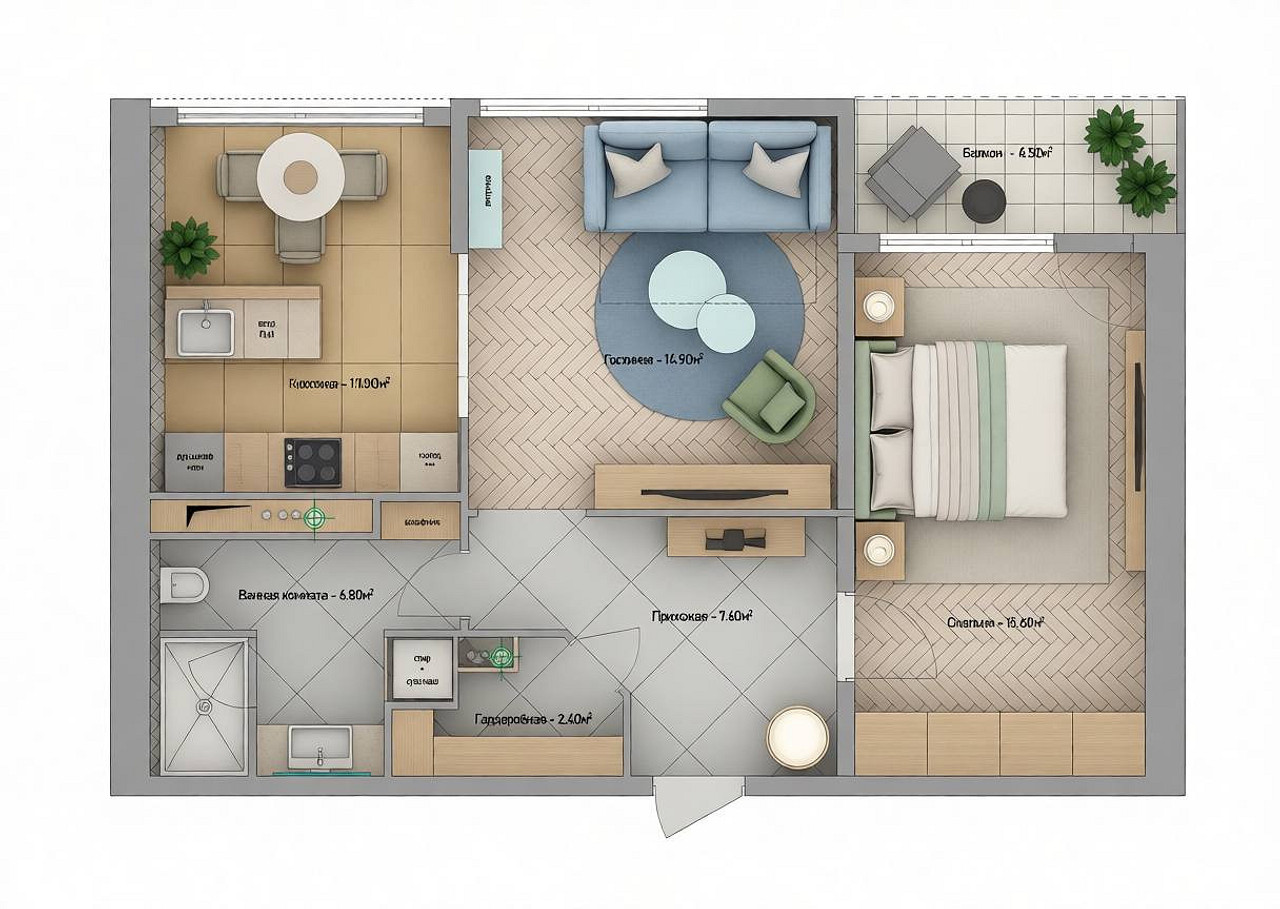 | Гостиная | – | 14,9 м2 |