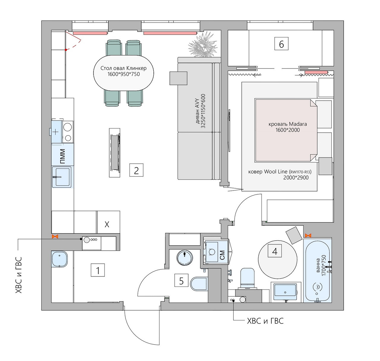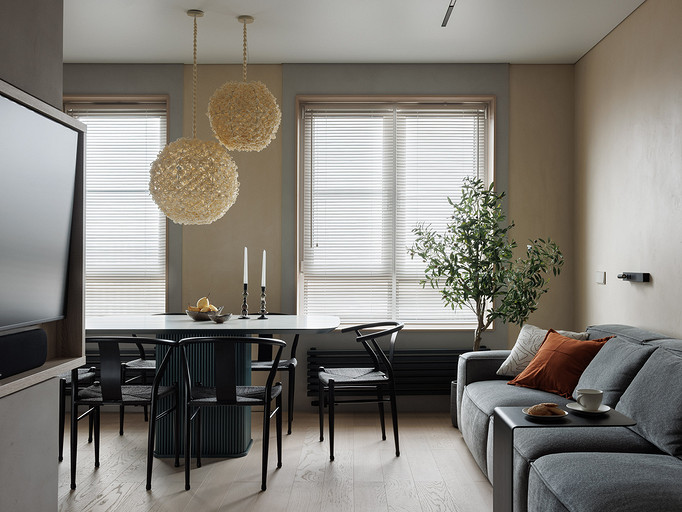 - Мебель: обеденный стол Особика, диван O’Prime