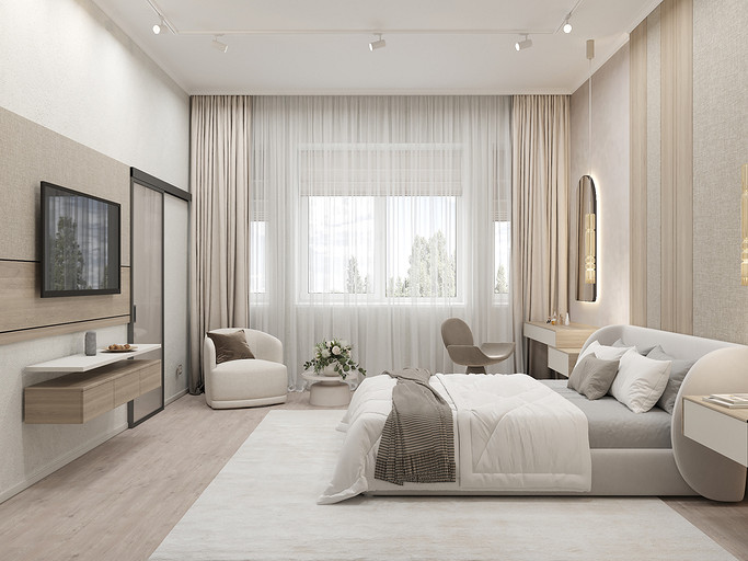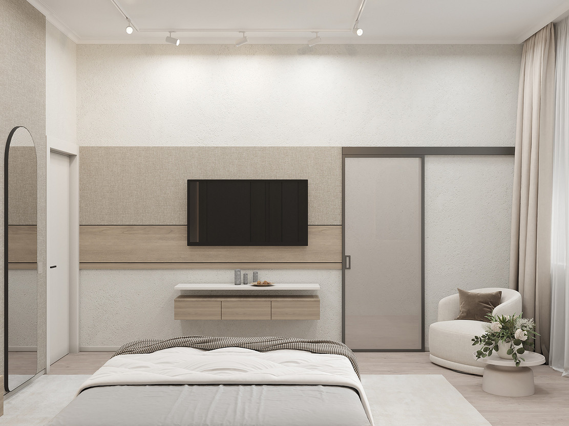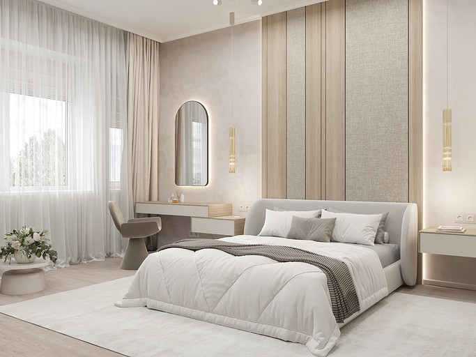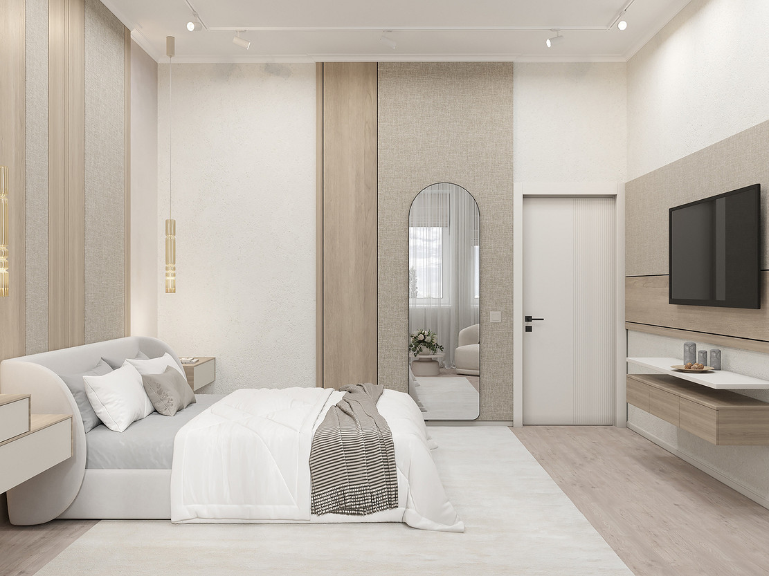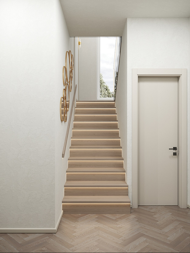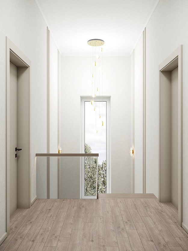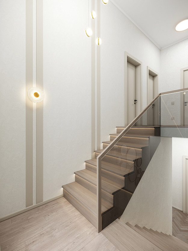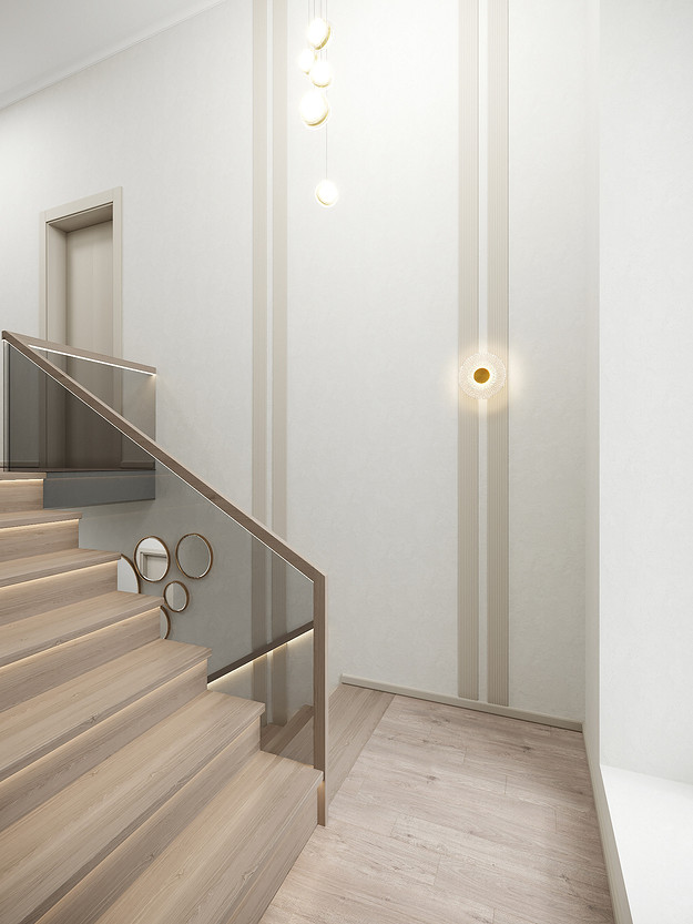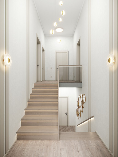 Представляем вашему вниманию просторный и светлый дом площадью 186 кв.м, расположенный в живописной Апрелевке Новой Москвы. Интерьер этого дома создан нами с любовью и вниманием к деталям, чтобы стать настоящим семейным гнездом для супругов и их двух активных мальчиков 9 и 11 лет. Данный дизайн-проект разработан с учётом изначальной планировки комнат, заложенной на этапе строительства. Наша основная задача заключалась в создании функциональной и комфортной расстановки мебели, максимально эффективно используя уже имеющиеся пространства. Мы учли эргономику, стиль и потребности заказчиков, чтобы обеспечить удобство и гармонию в каждом помещении без необходимости перепланировки. В результате продуманной расстановки мебели, сантехники и коммуникаций удалось добиться функциональности и удобства для всех членов семьи. На первом этаже находится просторная общая зона, включающая кухню-гостиную с обеденной зоной, а также открытая терраса. Мы также уделили время для создания эстетики парадного крыльца, которое встречает гостей стильным и приветливым видом, подчеркивающим общий дизайн дома. Особого внимания заслуживает зона кухни-гостиной, разделённая на две функциональные части. Кухонная зона оборудована всем необходимым для приготовления и семейных обедов, включая удобный обеденный стол, вокруг которого можно собрать всю семью. Гостиная — это просторное место для отдыха с большим и комфортным диваном, где можно проводить вечера за просмотром фильмов или играми с детьми. Под лестницей расположился вместительный хозяйственный блок, что позволяет аккуратно скрыть бытовые приборы и инвентарь, сохраняя при этом стиль и порядок в доме. Гостевая спальня оформлена в духе пятизвездочного отеля: просторная кровать, большой шкаф для хранения одежды и личных вещей, а также консольный столик с зеркалом, который можно использовать как для создания образа, так и для работы за ноутбуком или чтения. Отдельное внимание уделено организации досуга и отдыху на открытой террасе первого этажа — это место, где семья сможет наслаждаться свежим воздухом, устраивать вечерние чаепития или просто проводить время вместе на природе. Одним из ключевых моментов проекта стала прихожая, которая изначально казалась заказчикам маленькой и неудобной. Однако благодаря продуманному использованию пространства и функциональной мебели — открытой вешалке, вместительному гардеробному шкафу, большому зеркалу и удобной банкетке — здесь поместилось всё необходимое. При этом осталось достаточно свободного пространства, чтобы несколько человек могли комфортно разместиться одновременно, без ощущения тесноты. Второй этаж занимает приватная зона: две детские комнаты с удобной круговой расстановкой мебели, где дети могут играть, учиться и отдыхать. Главной же зоной уединения и отдыха является спальня с отдельной гардеробной и собственным санузлом. В этой комнате использованы все необходимые элементы для создания полного комфорта и автономии: здесь продуман каждый аспект для отдыха и расслабления, что позволяет взрослым членам семьи насладиться спокойствием и интимностью личного пространства. При разработке стилистического решения мы также отталкивались от образа жизни и пожеланий заказчиков: мы предложили оформить дом в нежных натуральных оттенках, 