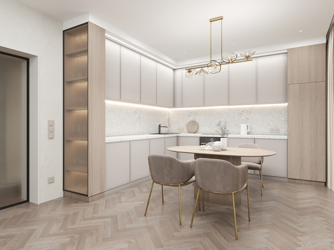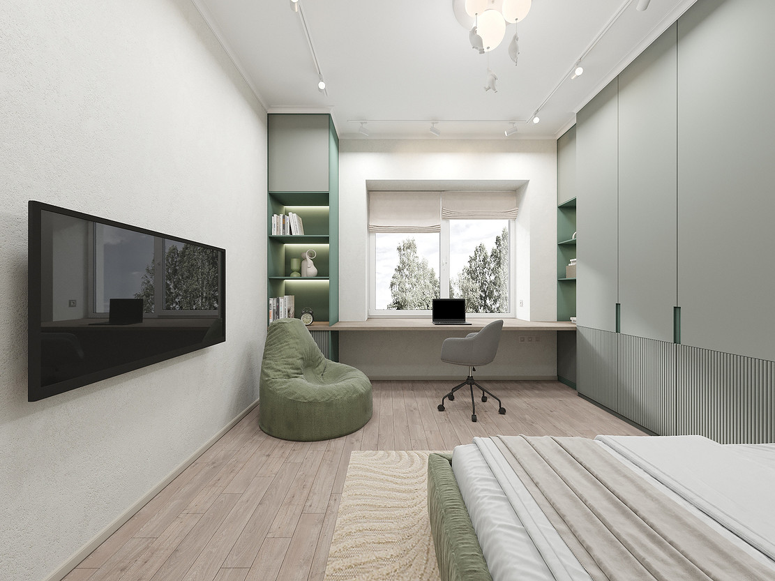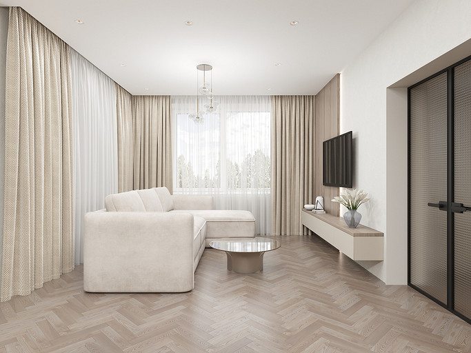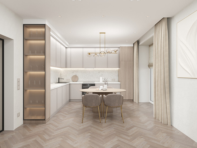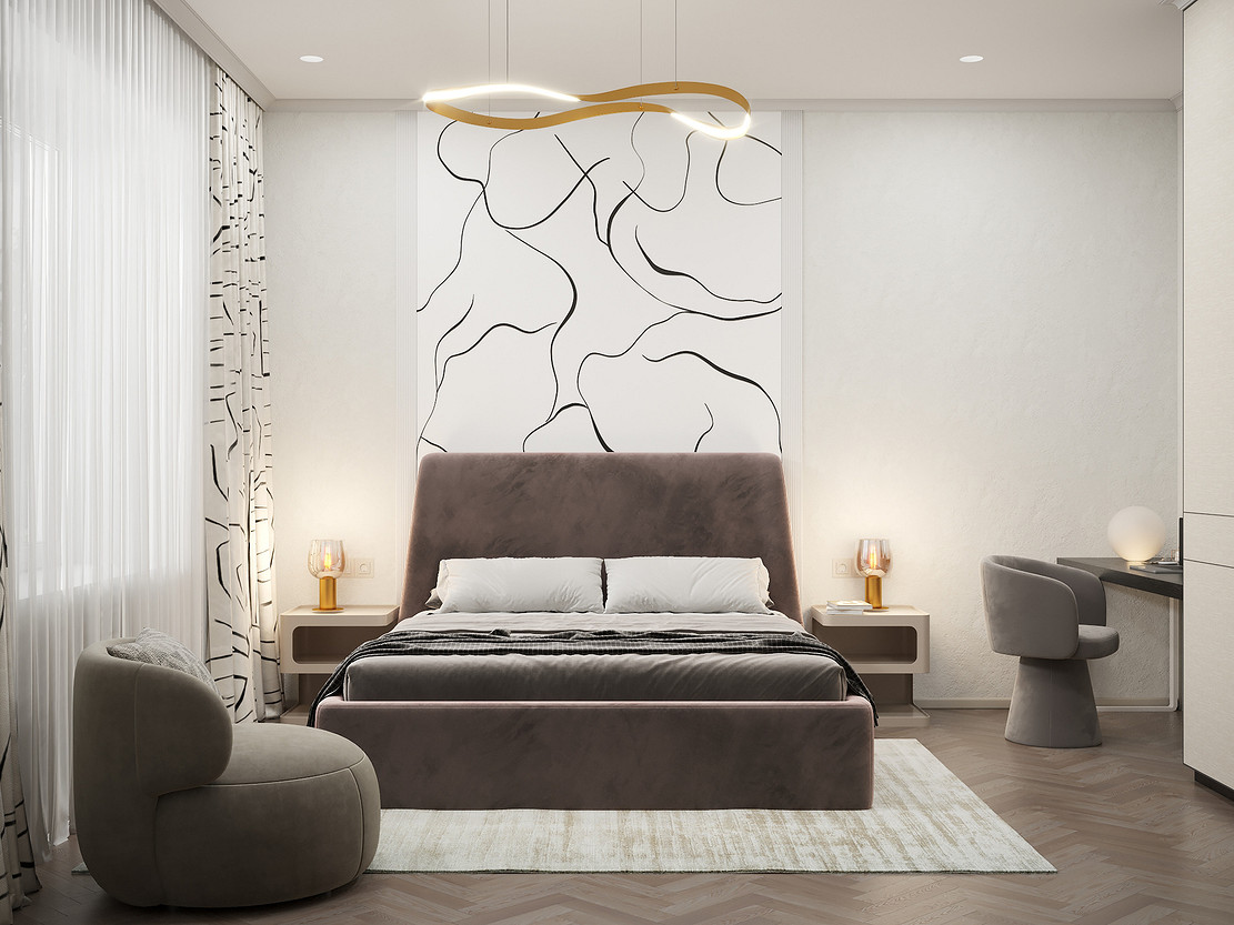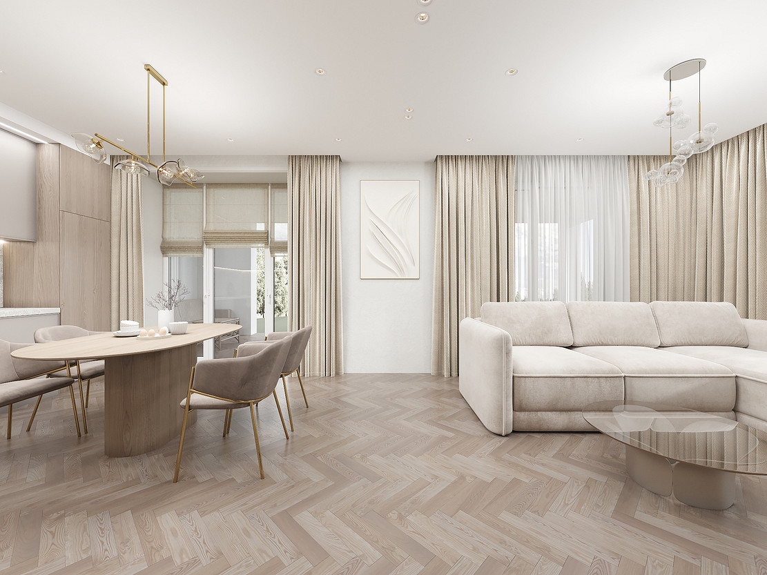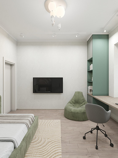 Представляем вашему вниманию просторный и светлый дом площадью 186 кв.м, расположенный в живописной Апрелевке Новой Москвы. Интерьер этого дома создан нами с любовью и вниманием к деталям, чтобы стать настоящим семейным гнездом для супругов и их двух активных мальчиков 9 и 11 лет. Данный дизайн-проект разработан с учётом изначальной планировки комнат, заложенной на этапе строительства. Наша основная задача заключалась в создании функциональной и комфортной расстановки мебели, максимально эффективно используя уже имеющиеся пространства. Мы учли эргономику, стиль и потребности заказчиков, чтобы обеспечить удобство и гармонию в каждом помещении без необходимости перепланировки. В результате продуманной расстановки мебели, сантехники и коммуникаций удалось добиться функциональности и удобства для всех членов семьи. На первом этаже находится просторная общая зона, включающая кухню-гостиную с обеденной зоной, а также открытая терраса. Мы также уделили время для создания эстетики парадного крыльца, которое встречает гостей стильным и приветливым видом, подчеркивающим общий дизайн дома. Особого внимания заслуживает зона кухни-гостиной, разделённая на две функциональные части. Кухонная зона оборудована всем необходимым для приготовления и семейных обедов, включая удобный обеденный стол, вокруг которого можно собрать всю семью. Гостиная — это просторное место для отдыха с большим и комфортным диваном, где можно проводить вечера за просмотром фильмов или играми с детьми. Под лестницей расположился вместительный хозяйственный блок, что позволяет аккуратно скрыть бытовые приборы и инвентарь, сохраняя при этом стиль и порядок в доме. Гостевая спальня оформлена в духе пятизвездочного отеля: просторная кровать, большой шкаф для хранения одежды и личных вещей, а также консольный столик с зеркалом, который можно использовать как для создания образа, так и для работы за ноутбуком или чтения. Отдельное внимание уделено организации досуга и отдыху на открытой террасе первого этажа — это место, где семья сможет наслаждаться свежим воздухом, устраивать вечерние чаепития или просто проводить время вместе на природе. Одним из ключевых моментов проекта стала прихожая, которая изначально казалась заказчикам маленькой и неудобной. Однако благодаря продуманному использованию пространства и функциональной мебели — открытой вешалке, вместительному гардеробному шкафу, большому зеркалу и удобной банкетке — здесь поместилось всё необходимое. При этом осталось достаточно свободного пространства, чтобы несколько человек могли комфортно разместиться одновременно, без ощущения тесноты. Второй этаж занимает приватная зона: две детские комнаты с удобной круговой расстановкой мебели, где дети могут играть, учиться и отдыхать. Главной же зоной уединения и отдыха является спальня с отдельной гардеробной и собственным санузлом. В этой комнате использованы все необходимые элементы для создания полного комфорта и автономии: здесь продуман каждый аспект для отдыха и расслабления, что позволяет взрослым членам семьи насладиться спокойствием и интимностью личного пространства. При разработке стилистического решения мы также отталкивались от образа жизни и пожеланий заказчиков: мы предложили оформить дом в нежных натуральных оттенках, 