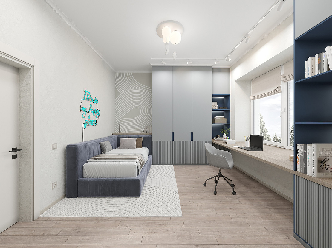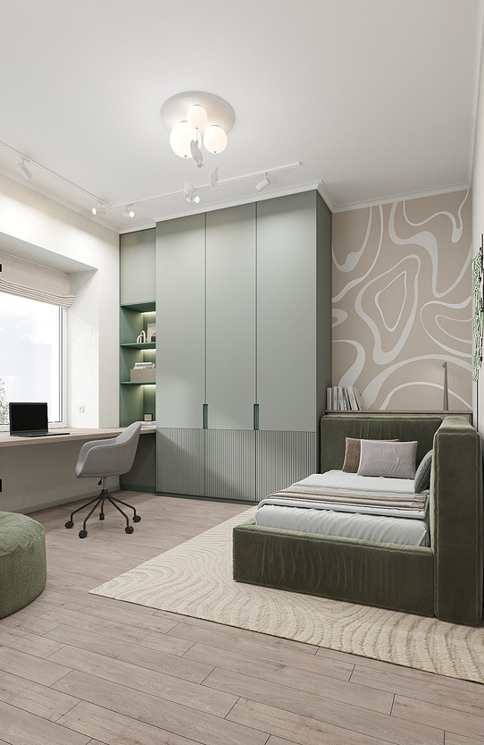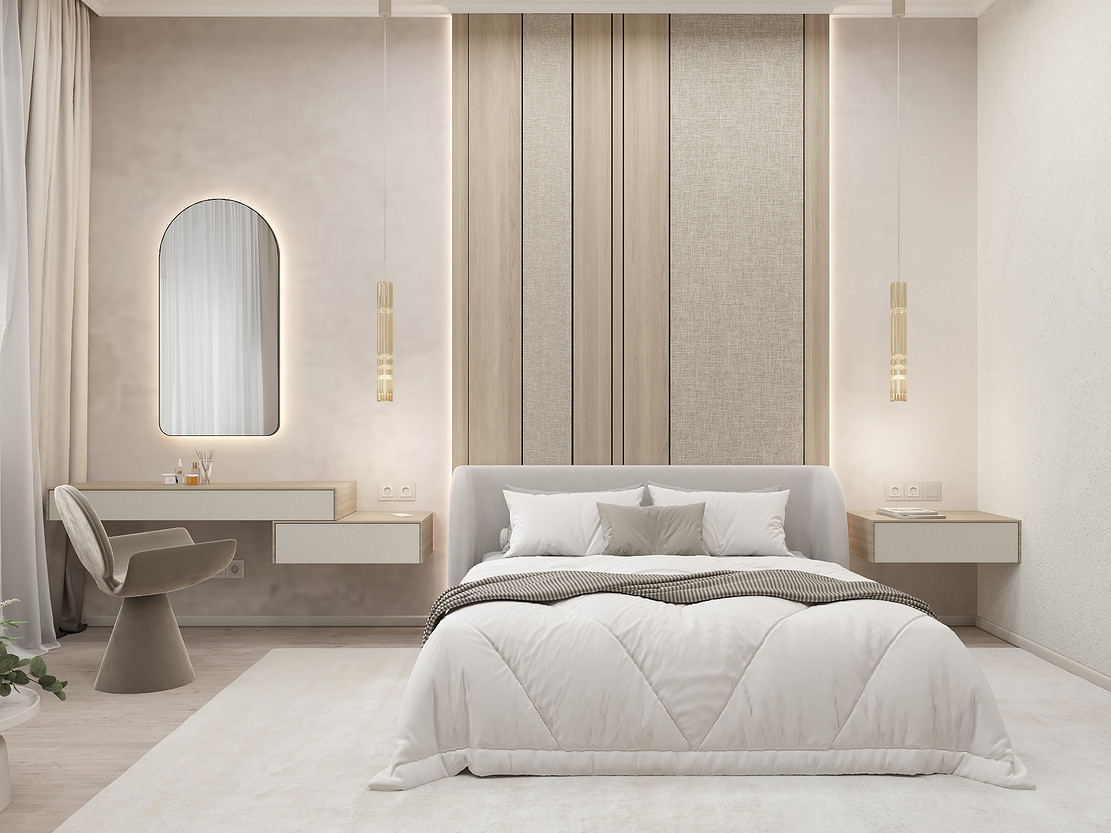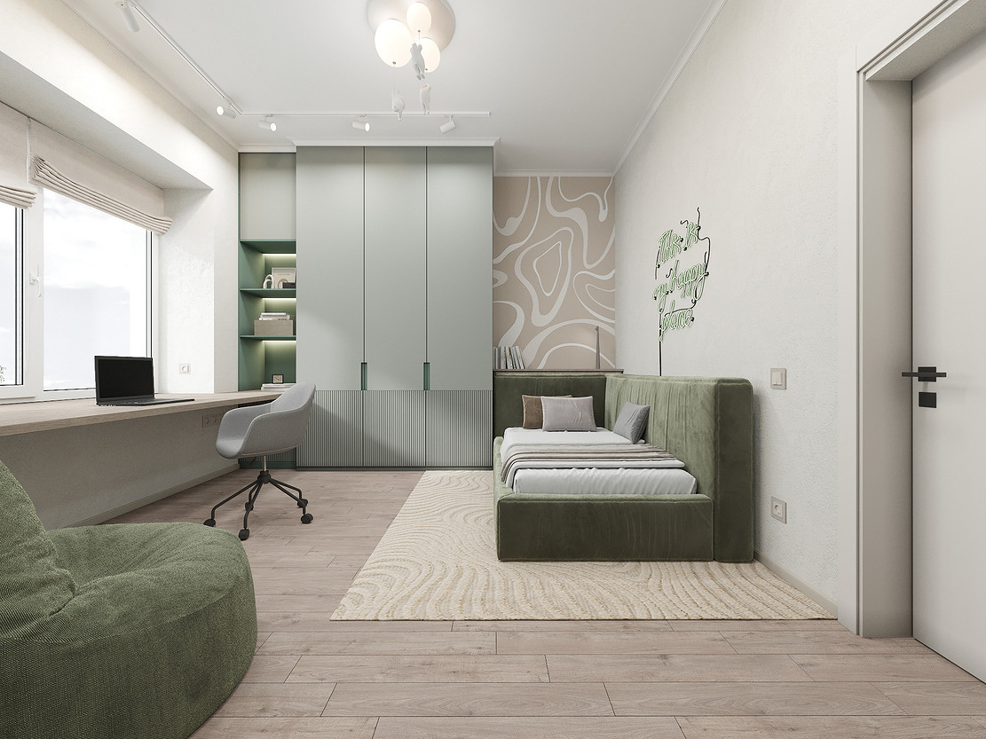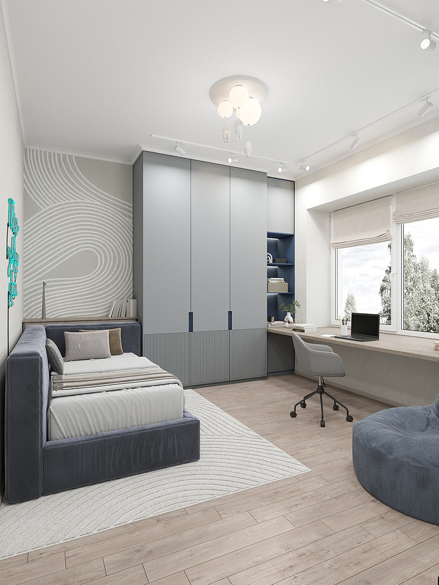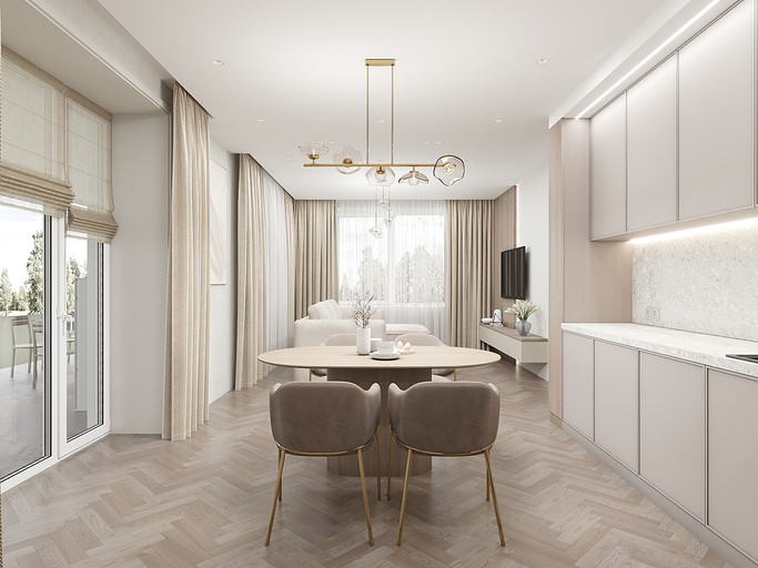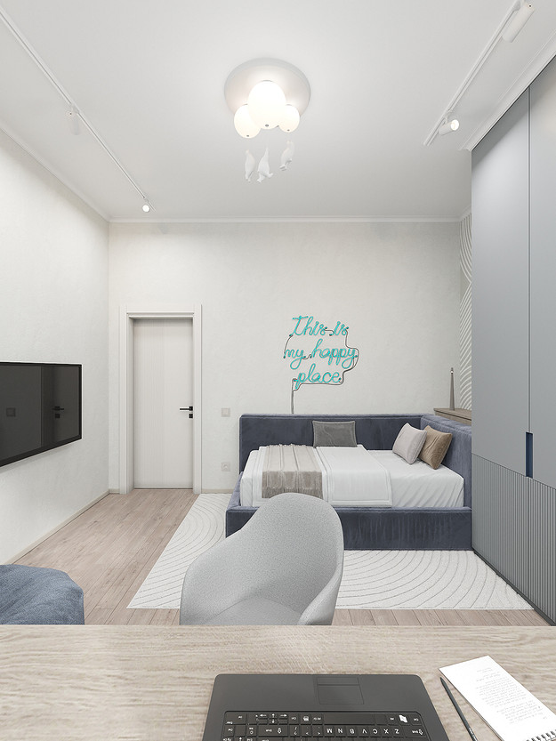 Представляем вашему вниманию просторный и светлый дом площадью 186 кв.м, расположенный в живописной Апрелевке Новой Москвы. Интерьер этого дома создан нами с любовью и вниманием к деталям, чтобы стать настоящим семейным гнездом для супругов и их двух активных мальчиков 9 и 11 лет. Данный дизайн-проект разработан с учётом изначальной планировки комнат, заложенной на этапе строительства. Наша основная задача заключалась в создании функциональной и комфортной расстановки мебели, максимально эффективно используя уже имеющиеся пространства. Мы учли эргономику, стиль и потребности заказчиков, чтобы обеспечить удобство и гармонию в каждом помещении без необходимости перепланировки. В результате продуманной расстановки мебели, сантехники и коммуникаций удалось добиться функциональности и удобства для всех членов семьи. На первом этаже находится просторная общая зона, включающая кухню-гостиную с обеденной зоной, а также открытая терраса. Мы также уделили время для создания эстетики парадного крыльца, которое встречает гостей стильным и приветливым видом, подчеркивающим общий дизайн дома. Особого внимания заслуживает зона кухни-гостиной, разделённая на две функциональные части. Кухонная зона оборудована всем необходимым для приготовления и семейных обедов, включая удобный обеденный стол, вокруг которого можно собрать всю семью. Гостиная — это просторное место для отдыха с большим и комфортным диваном, где можно проводить вечера за просмотром фильмов или играми с детьми. Под лестницей расположился вместительный хозяйственный блок, что позволяет аккуратно скрыть бытовые приборы и инвентарь, сохраняя при этом стиль и порядок в доме. Гостевая спальня оформлена в духе пятизвездочного отеля: просторная кровать, большой шкаф для хранения одежды и личных вещей, а также консольный столик с зеркалом, который можно использовать как для создания образа, так и для работы за ноутбуком или чтения. Отдельное внимание уделено организации досуга и отдыху на открытой террасе первого этажа — это место, где семья сможет наслаждаться свежим воздухом, устраивать вечерние чаепития или просто проводить время вместе на природе. Одним из ключевых моментов проекта стала прихожая, которая изначально казалась заказчикам маленькой и неудобной. Однако благодаря продуманному использованию пространства и функциональной мебели — открытой вешалке, вместительному гардеробному шкафу, большому зеркалу и удобной банкетке — здесь поместилось всё необходимое. При этом осталось достаточно свободного пространства, чтобы несколько человек могли комфортно разместиться одновременно, без ощущения тесноты. Второй этаж занимает приватная зона: две детские комнаты с удобной круговой расстановкой мебели, где дети могут играть, учиться и отдыхать. Главной же зоной уединения и отдыха является спальня с отдельной гардеробной и собственным санузлом. В этой комнате использованы все необходимые элементы для создания полного комфорта и автономии: здесь продуман каждый аспект для отдыха и расслабления, что позволяет взрослым членам семьи насладиться спокойствием и интимностью личного пространства. При разработке стилистического решения мы также отталкивались от образа жизни и пожеланий заказчиков: мы предложили оформить дом в нежных натуральных оттенках, 