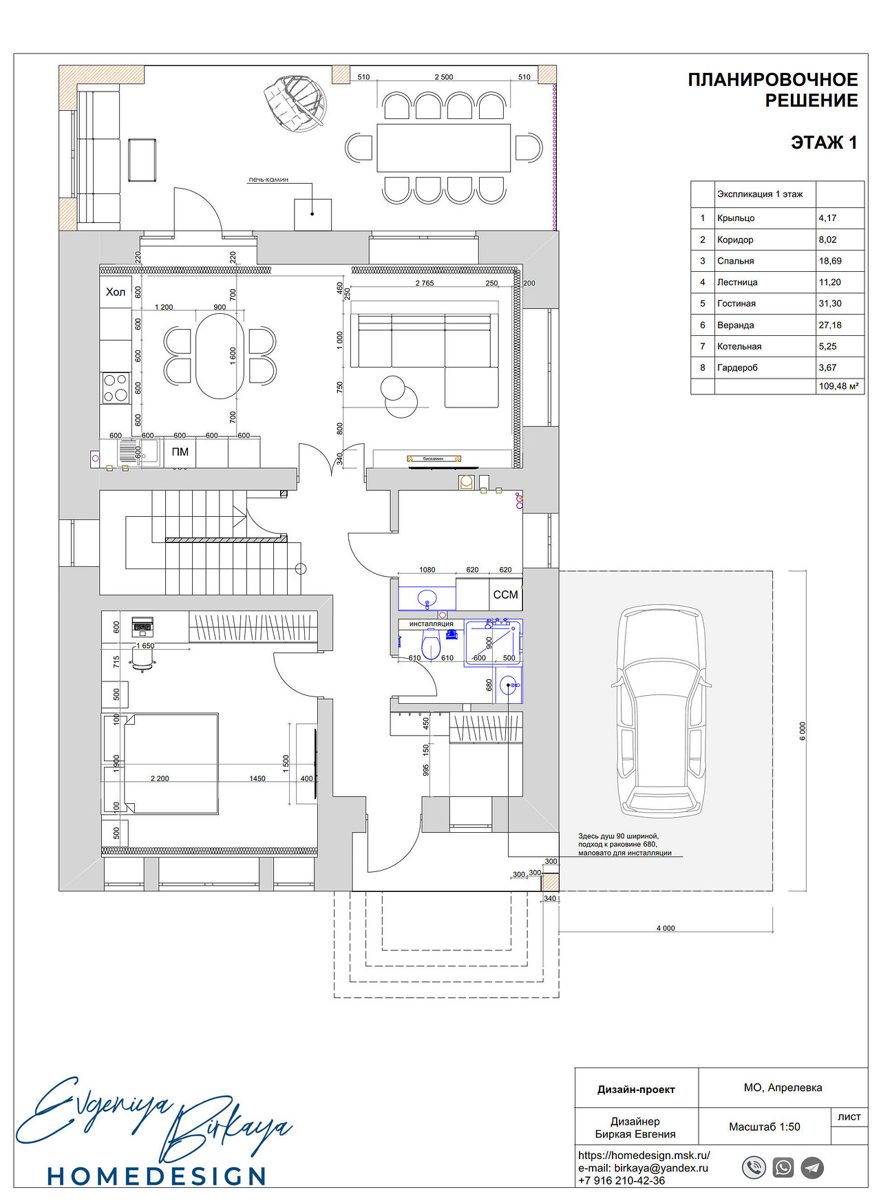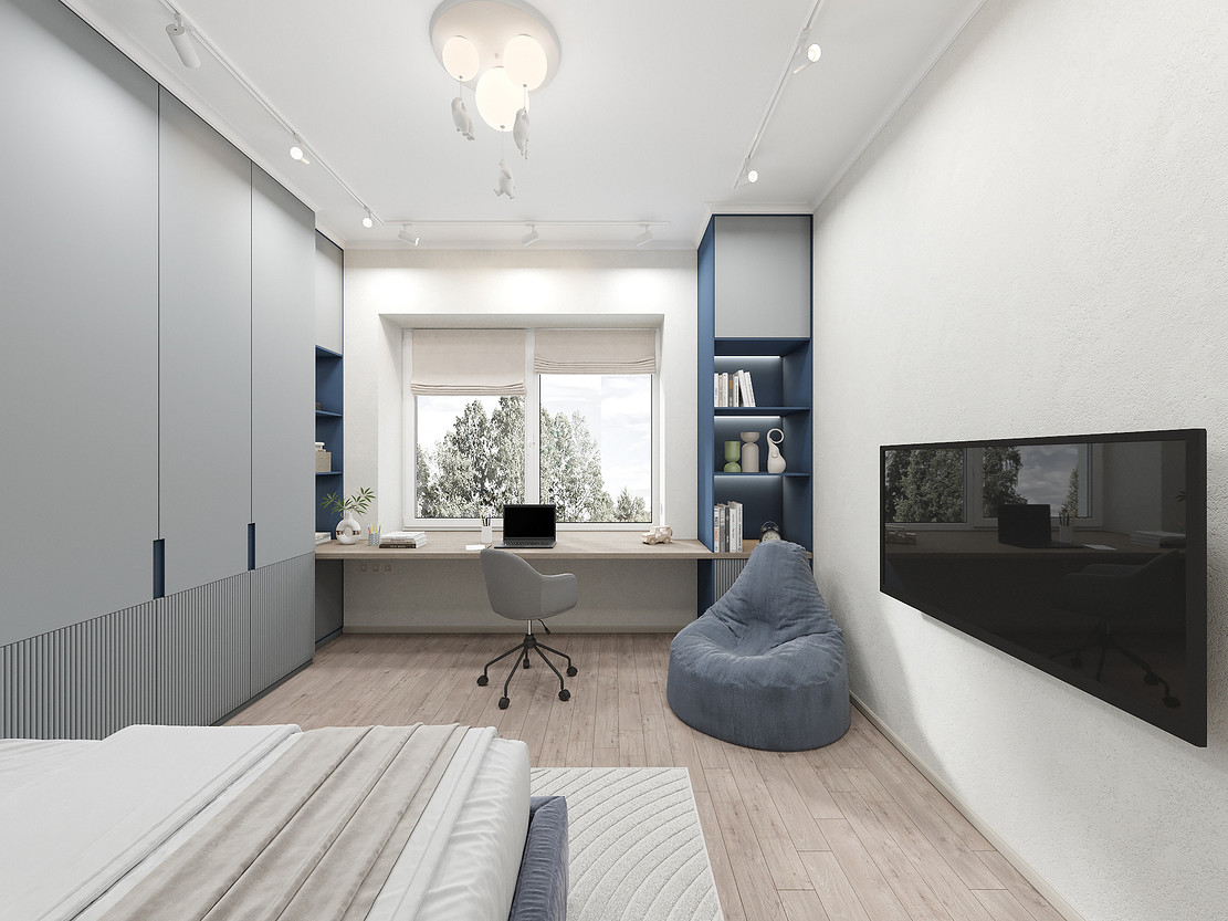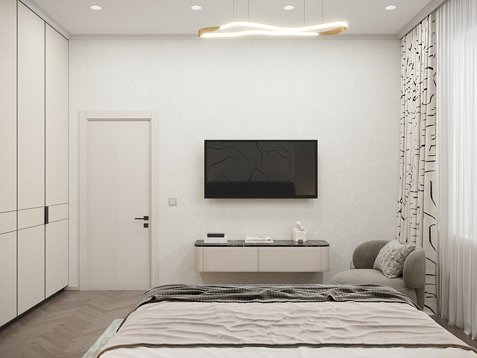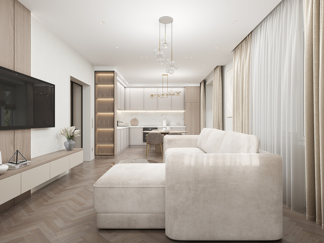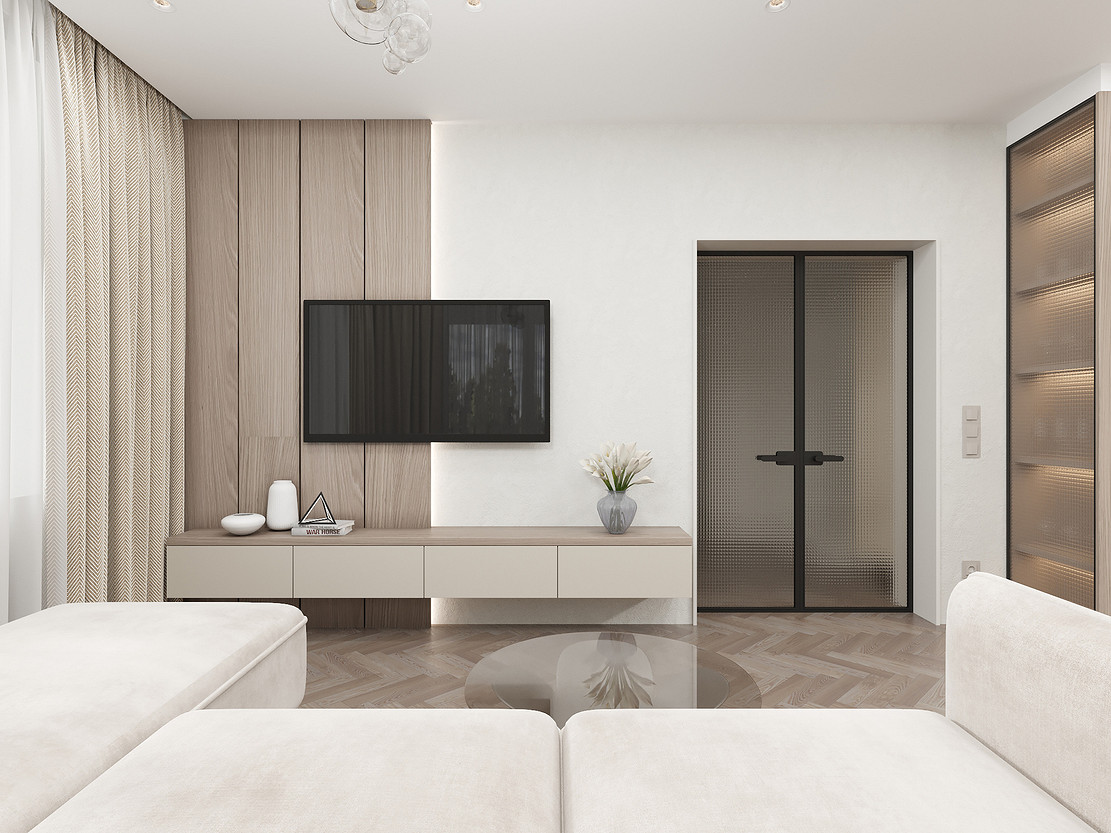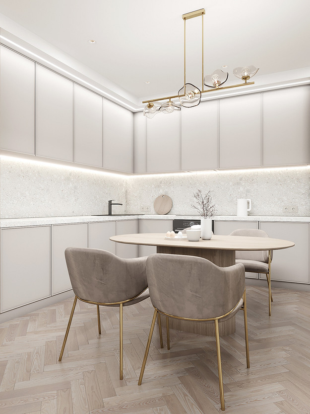 Представляем вашему вниманию просторный и светлый дом площадью 186 кв.м, расположенный в живописной Апрелевке Новой Москвы. Интерьер этого дома создан нами с любовью и вниманием к деталям, чтобы стать настоящим семейным гнездом для супругов и их двух активных мальчиков 9 и 11 лет. Данный дизайн-проект разработан с учётом изначальной планировки комнат, заложенной на этапе строительства. Наша основная задача заключалась в создании функциональной и комфортной расстановки мебели, максимально эффективно используя уже имеющиеся пространства. Мы учли эргономику, стиль и потребности заказчиков, чтобы обеспечить удобство и гармонию в каждом помещении без необходимости перепланировки. В результате продуманной расстановки мебели, сантехники и коммуникаций удалось добиться функциональности и удобства для всех членов семьи. На первом этаже находится просторная общая зона, включающая кухню-гостиную с обеденной зоной, а также открытая терраса. Мы также уделили время для создания эстетики парадного крыльца, которое встречает гостей стильным и приветливым видом, подчеркивающим общий дизайн дома. Особого внимания заслуживает зона кухни-гостиной, разделённая на две функциональные части. Кухонная зона оборудована всем необходимым для приготовления и семейных обедов, включая удобный обеденный стол, вокруг которого можно собрать всю семью. Гостиная — это просторное место для отдыха с большим и комфортным диваном, где можно проводить вечера за просмотром фильмов или играми с детьми. Под лестницей расположился вместительный хозяйственный блок, что позволяет аккуратно скрыть бытовые приборы и инвентарь, сохраняя при этом стиль и порядок в доме. Гостевая спальня оформлена в духе пятизвездочного отеля: просторная кровать, большой шкаф для хранения одежды и личных вещей, а также консольный столик с зеркалом, который можно использовать как для создания образа, так и для работы за ноутбуком или чтения. Отдельное внимание уделено организации досуга и отдыху на открытой террасе первого этажа — это место, где семья сможет наслаждаться свежим воздухом, устраивать вечерние чаепития или просто проводить время вместе на природе. Одним из ключевых моментов проекта стала прихожая, которая изначально казалась заказчикам маленькой и неудобной. Однако благодаря продуманному использованию пространства и функциональной мебели — открытой вешалке, вместительному гардеробному шкафу, большому зеркалу и удобной банкетке — здесь поместилось всё необходимое. При этом осталось достаточно свободного пространства, чтобы несколько человек могли комфортно разместиться одновременно, без ощущения тесноты. Второй этаж занимает приватная зона: две детские комнаты с удобной круговой расстановкой мебели, где дети могут играть, учиться и отдыхать. Главной же зоной уединения и отдыха является спальня с отдельной гардеробной и собственным санузлом. В этой комнате использованы все необходимые элементы для создания полного комфорта и автономии: здесь продуман каждый аспект для отдыха и расслабления, что позволяет взрослым членам семьи насладиться спокойствием и интимностью личного пространства. При разработке стилистического решения мы также отталкивались от образа жизни и пожеланий заказчиков: мы предложили оформить дом в нежных натуральных оттенках, 