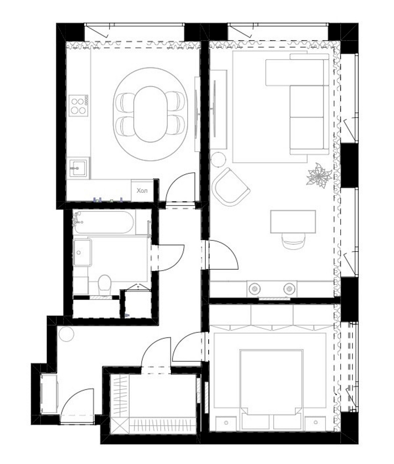 Реализованный проект двухкомнатной квартиры площадью 76,4 м2