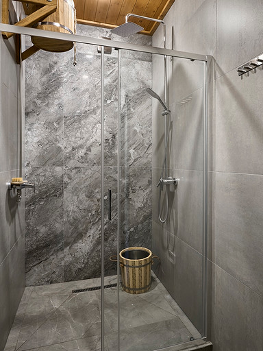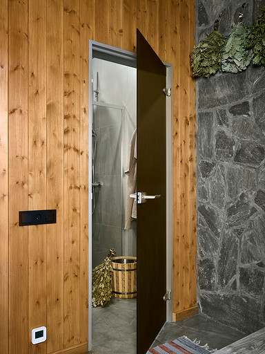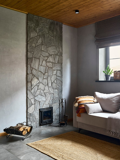 - Стены: вагонка, декоративная штукатурка, натуральный камень (кварцит, талькохлорит), керамогранит «Витра», «Эквип»