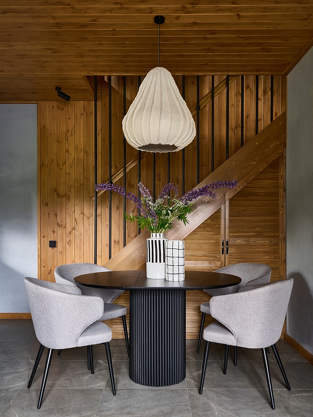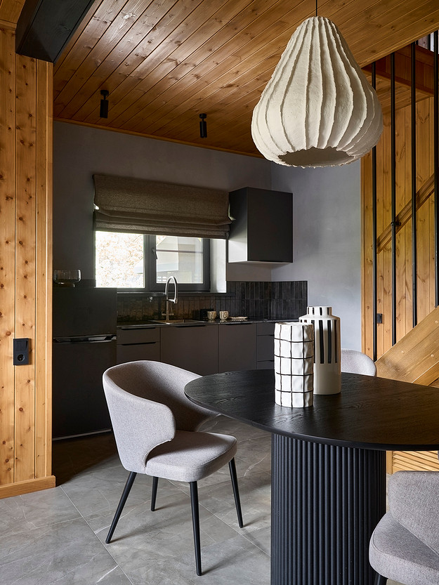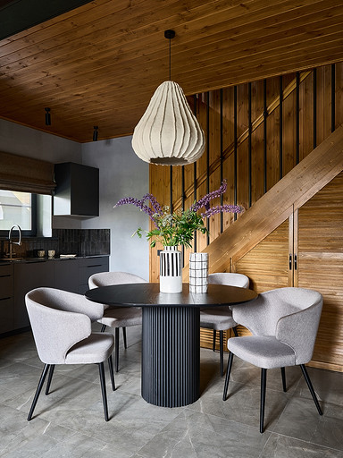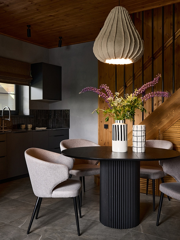 - Мебель: кухня «Лемана Про», обеденный стол и стулья «Напилили» (на заказ)