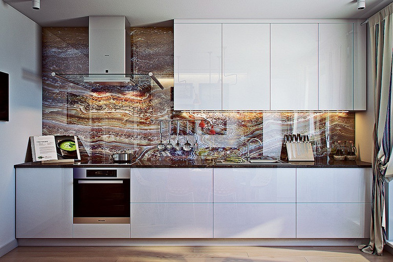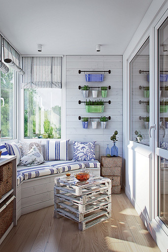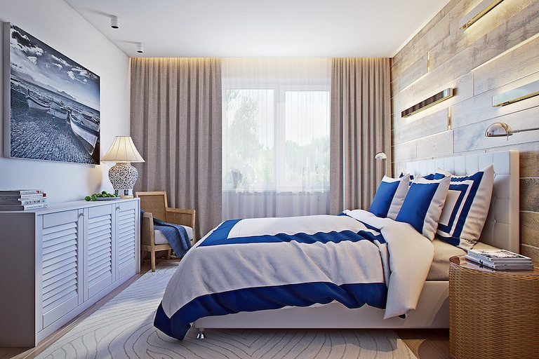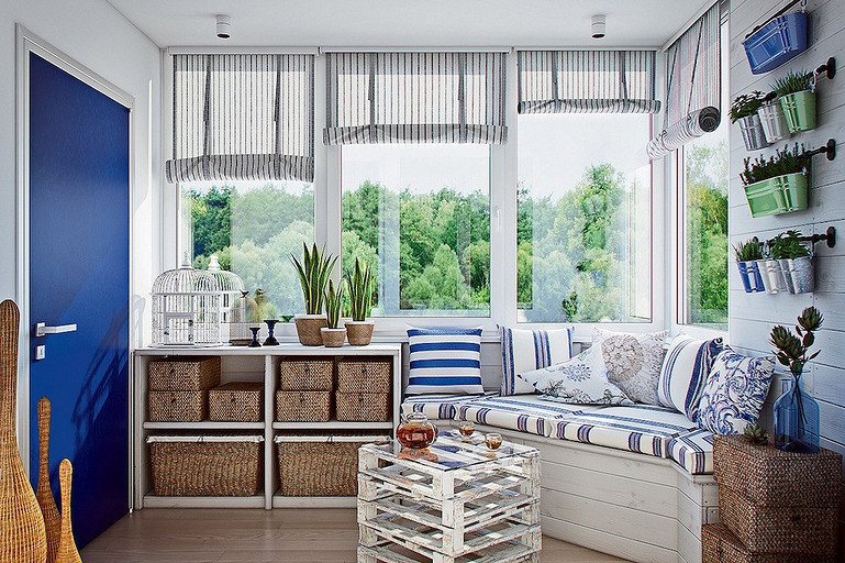 Двушка в морском стиле, в которой центром притяжения стали кухня и лоджия