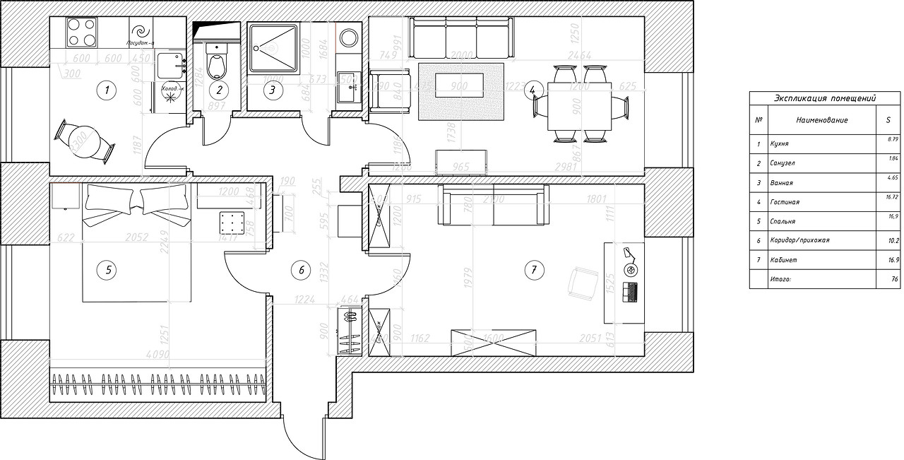 | Общая площадь | 76 м2 | 76 м2 |