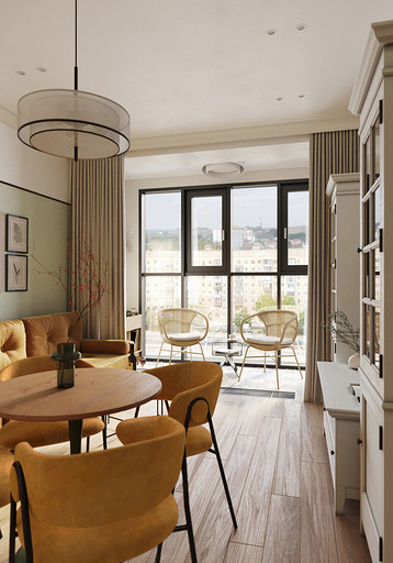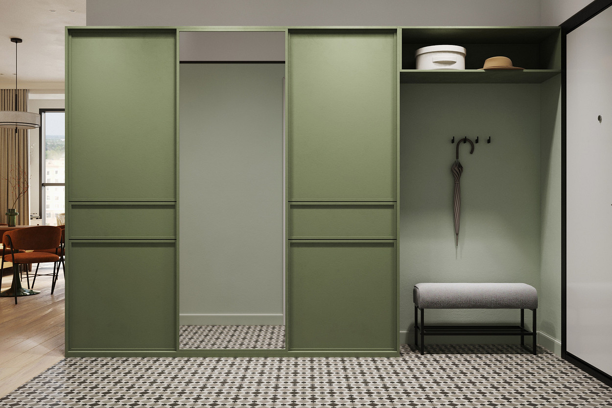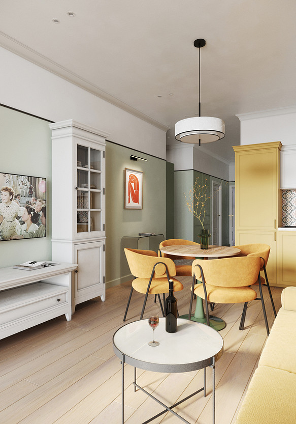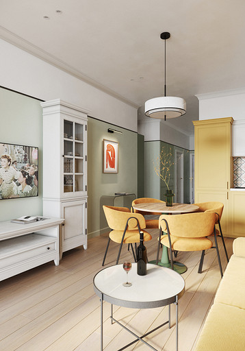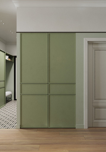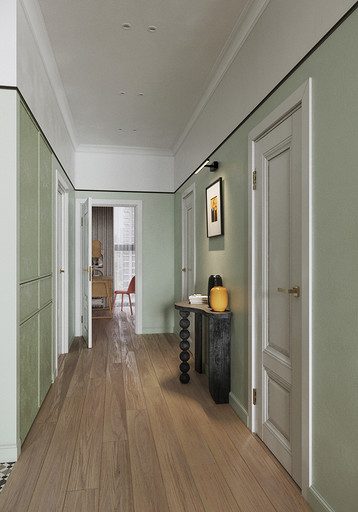 Основными пожеланиями заказчика были цвет, сочетание классического стиля и нестандартной мебели, ощущение воздуха и пространства. Результатом работы стал проект квартиры для семьи с удобной и функциональной планировкой, продуманным хранением, интересными цветовыми решениями и индивидуальным дизайном.