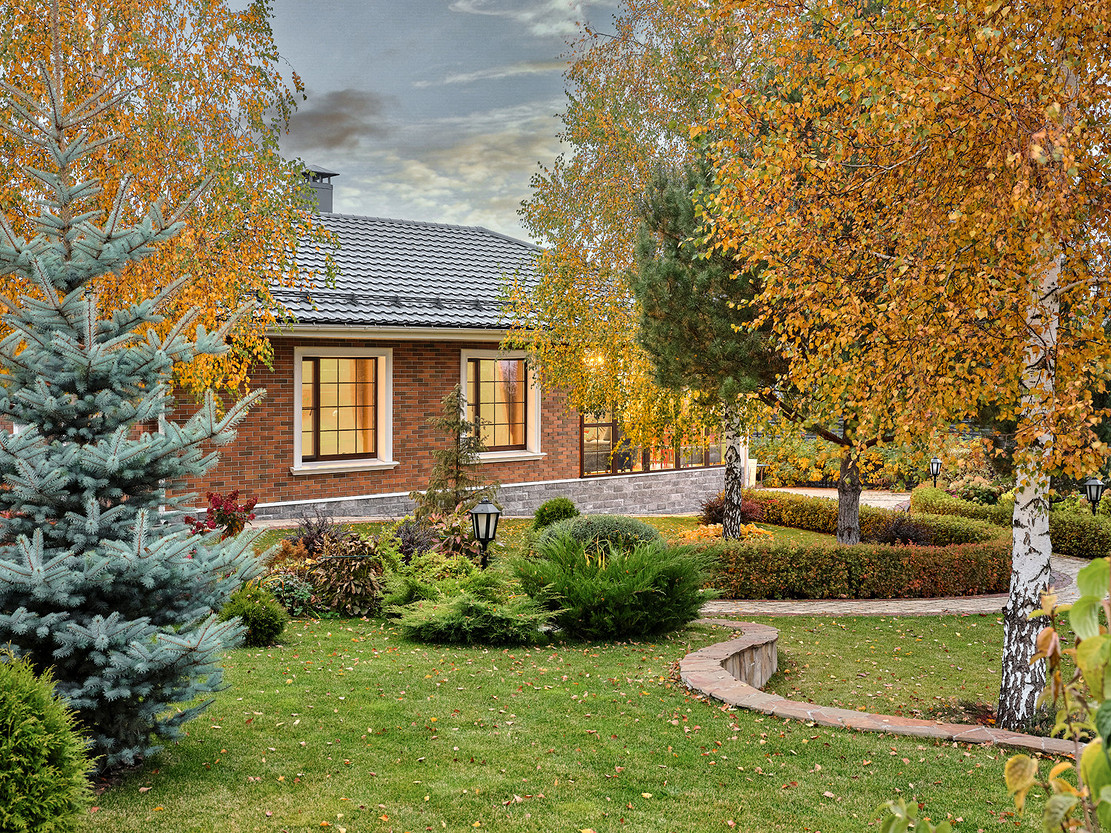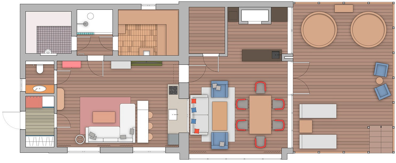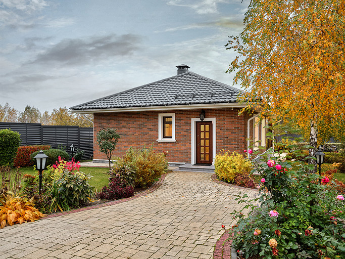Реализованный проект одноэтажного банного дома площадью 99,7 м2 (без учета площади открытой террасы)
