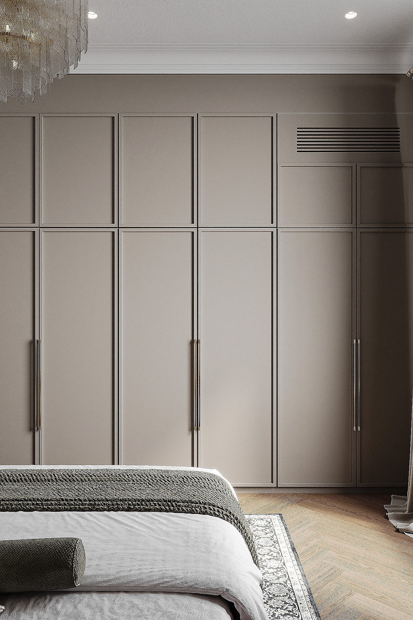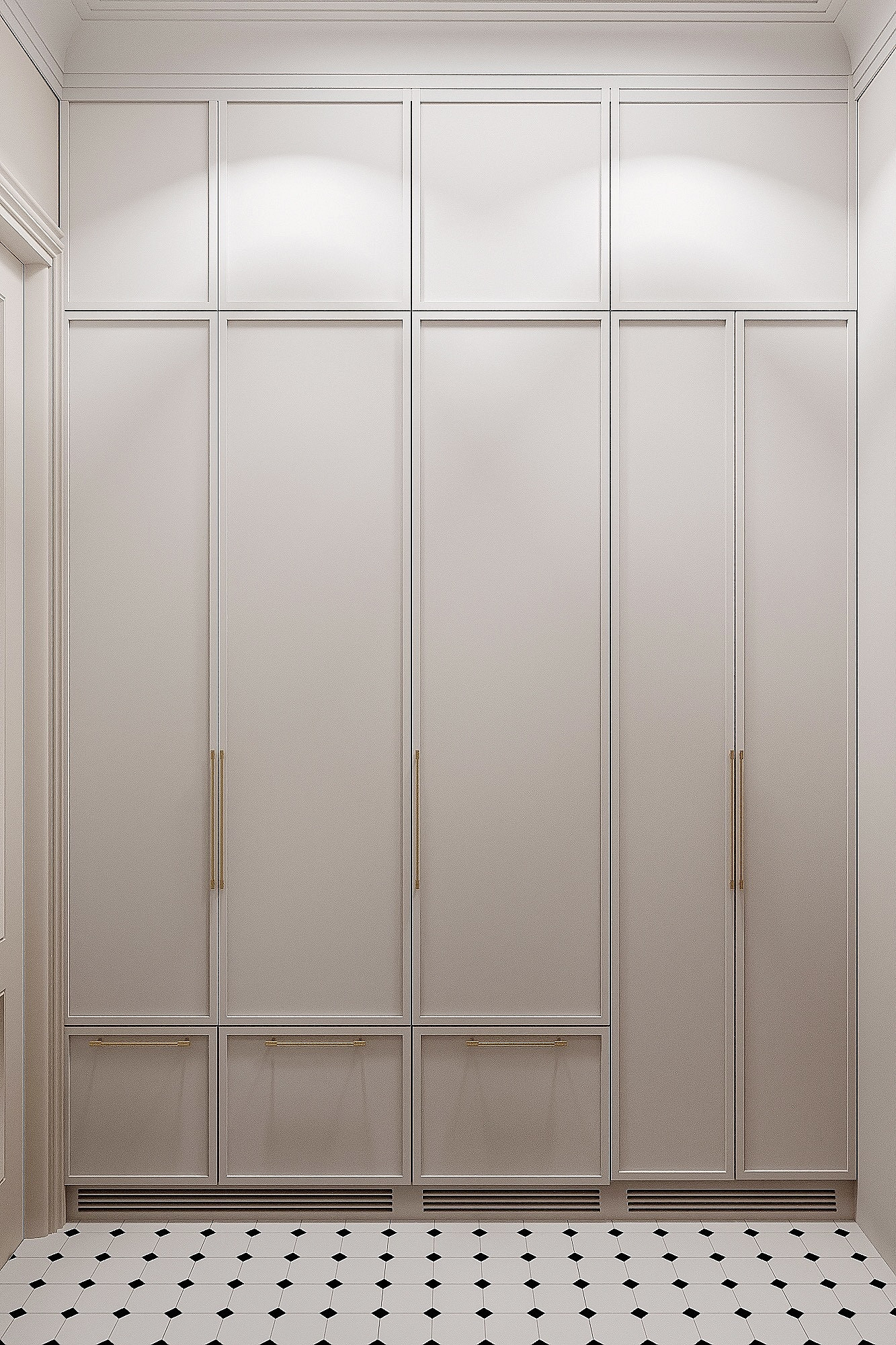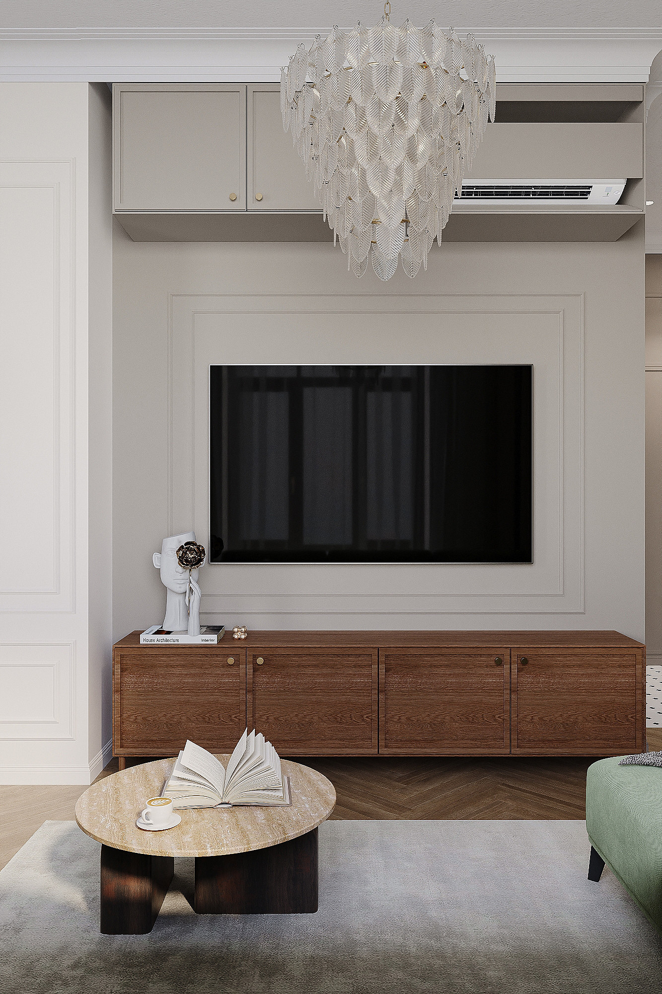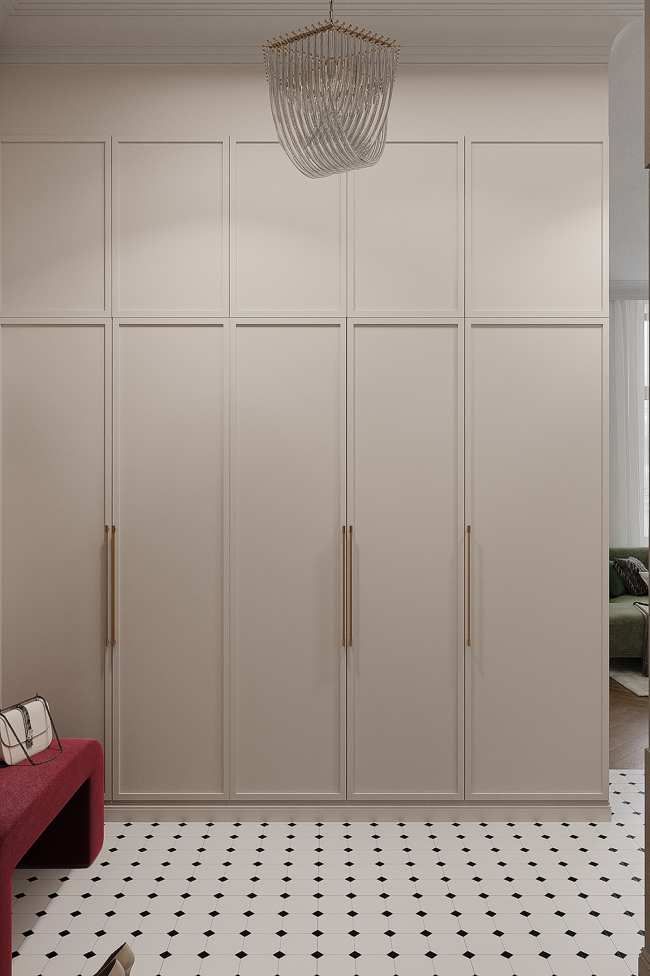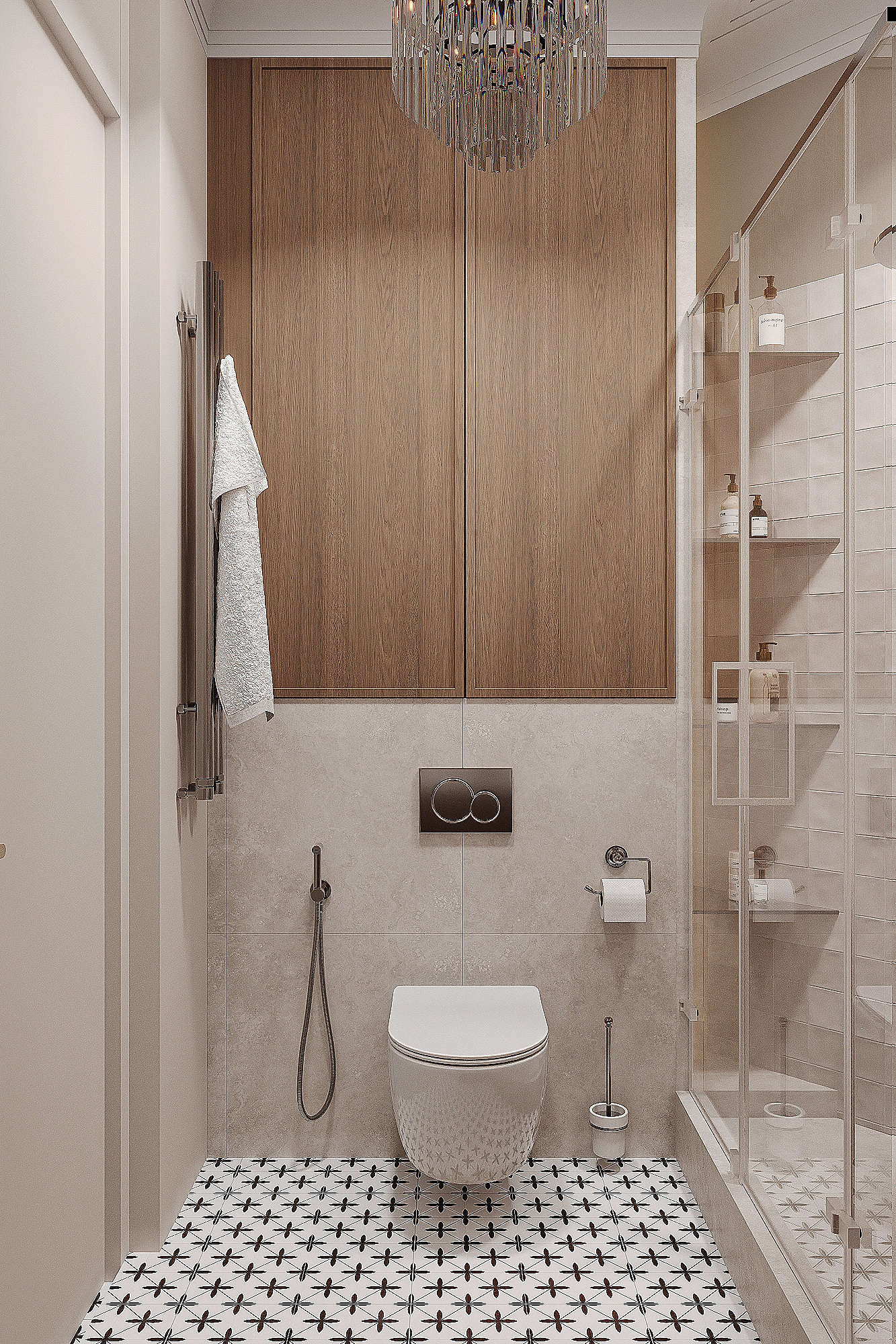Высокие потолки в 3,4 метра стали идеальным холстом для создания утонченного интерьера в стиле французской классики, приправленного пикантными акцентами. Сердцем концепции является гармония: правильные формы, симметрия и композиционное единство пронизывают каждый уголок пространства. Цветовая палитра построена на изысканных сочетаниях, где нежные оттенки серого и бежевого переплетаются с глубокими акцентами золота и бордо. Особое внимание уделено функциональности. Зоны, деликатно интегрированные в пространство, остаются практически незаметными при первом взгляде, не нарушают ощущение легкости и воздушности. Винтажные элементы играют ключевую роль в создании неповторимого шарма. Антикварные зеркала, изящная мебель с изогнутыми ножками и люстра с хрустальными подвесками добавляют интерьеру исторической глубины и аутентичности. Этот интерьер – не просто место для жизни, а настоящее произведение искусства, где французская классика обретает новую жизнь в современном исполнении.