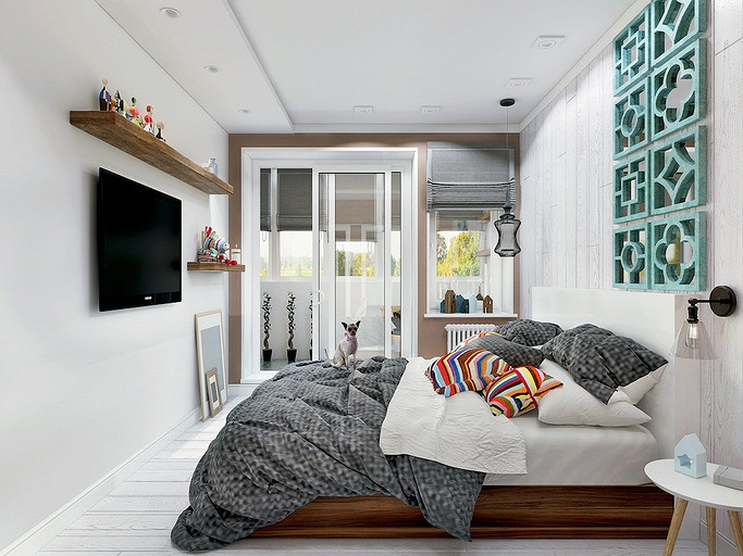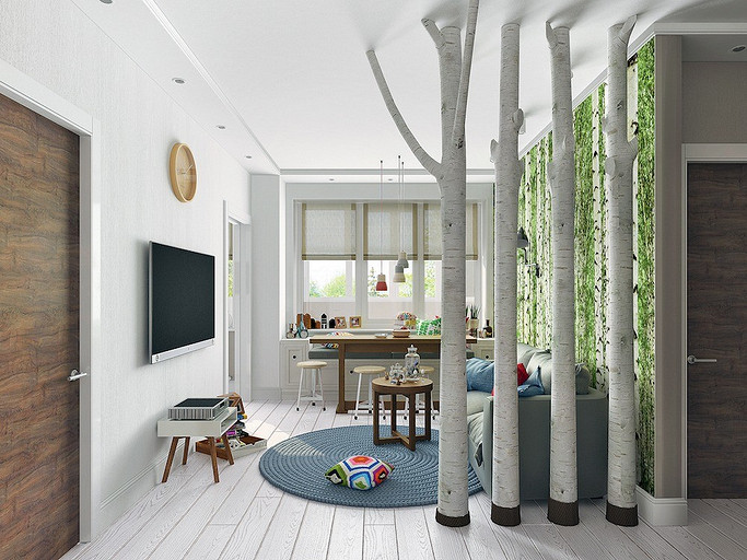 Дизайн квартиры с акцентом на дерево: доски в спальне и берёзы в гостиной