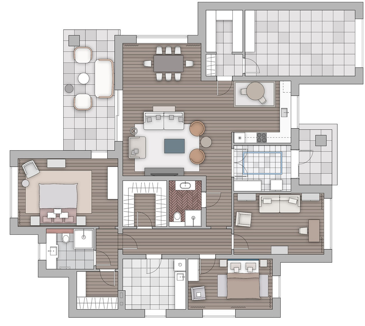 - Пол: керамогранит «Порцеланоса»
