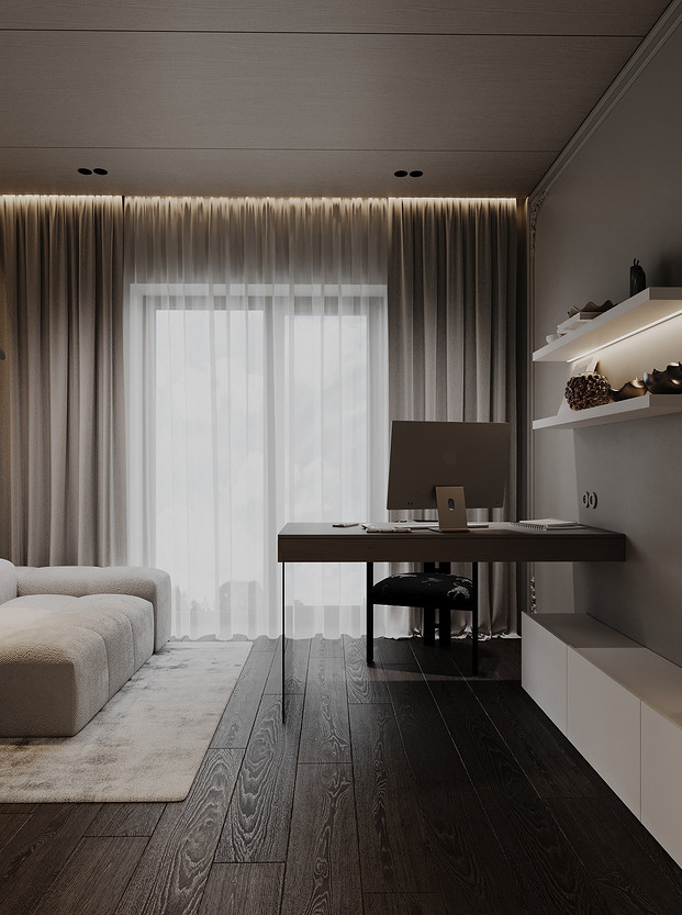 Концепция данного проекта — создание комфортного, уютного и стильного дома для современной семьи, состоящей из двух взрослых на перспективу расширения семьи. Ключевым является современный стиль, в основе которого — светло-серые оттенки и спокойные тона, создающие теплую и располагающую атмосферу.