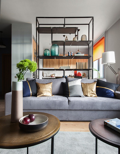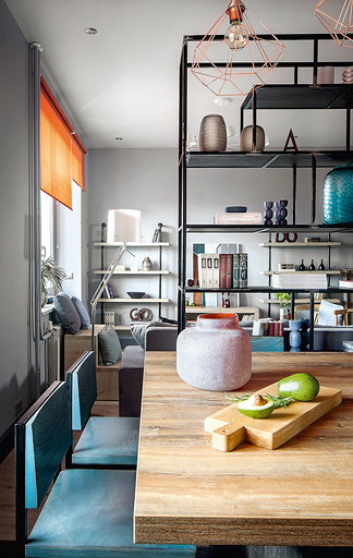Дизайн двухкомнатной квартиры сочетает в себе тяжелые сварные конструкции в стиле лофт, строгие линии мебели и ярко-оранжевые шторы для настроения. Читать далее...