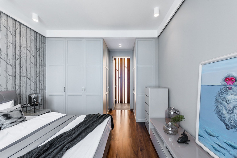 - Мебель: кровать, тумбы, комоды и тумба под ТВ Steel Land, гардеробные шкафы «Очень серьёзное бюро»