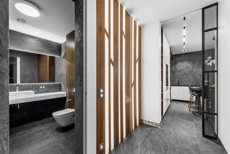 - Стены: керамический гранит Brave Atlas Concorde, керамическая плитка Equipe Scale Equipe Cerámicas