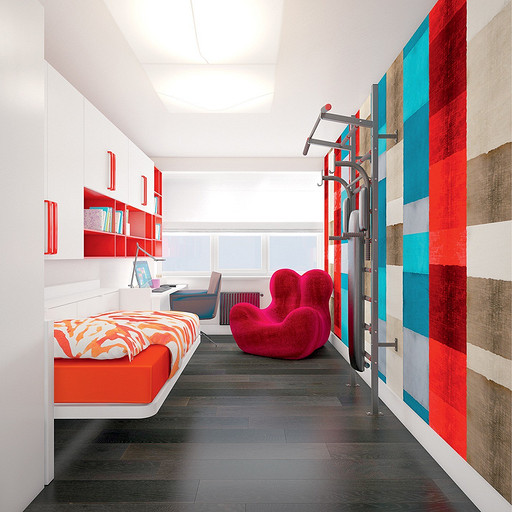 Благодаря грамотной перепланировке в двухкомнатной квартире выделили две спальни и просторную гостиную, сообщающуюся с кухней посредством полупрозрачных дверей. Интерьер оформлен по принципам минимализма— прямые линии, чёткие формы. Читать далее...