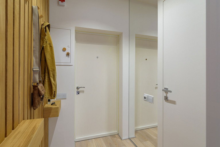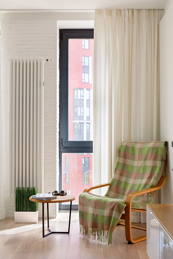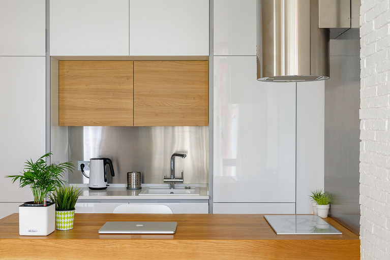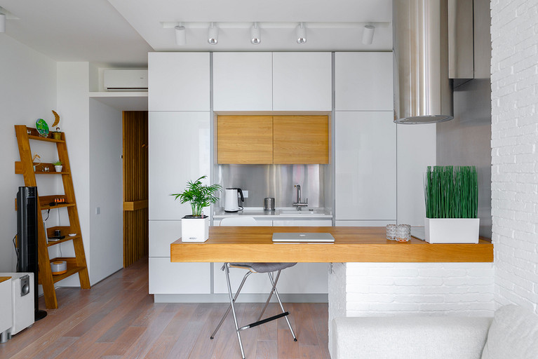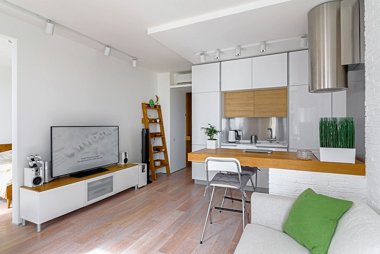 Маленькая уютная однушка в стиле лофт: светлые стены и деревянная отделка