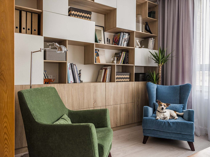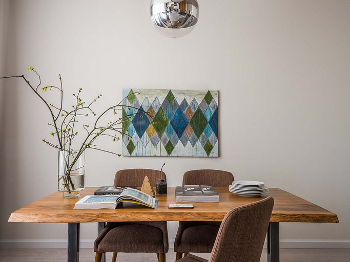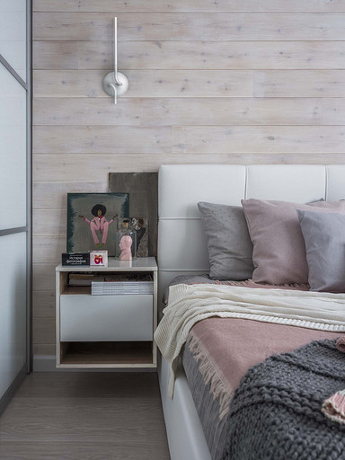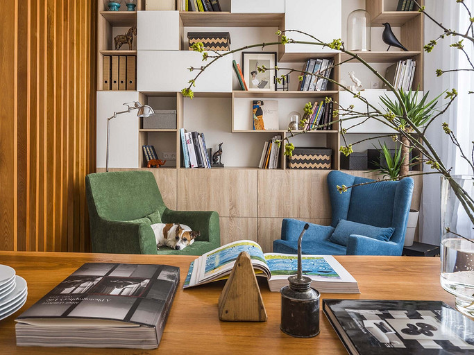 Небольшая квартира в скандинавском стиле: светлые стены, деревянная отделка и яркая мебель