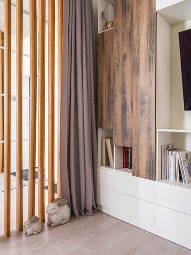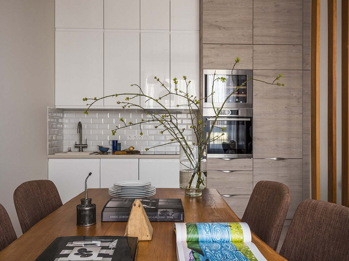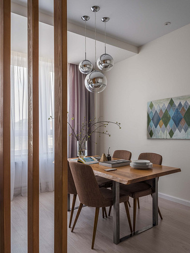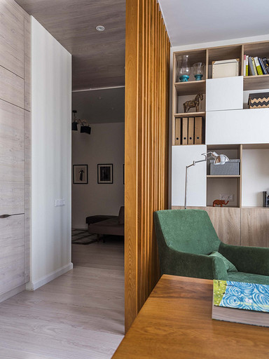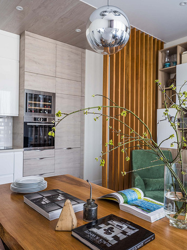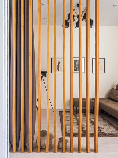 Благодаря натуральным материалам, сдержанному цветовому решению и полупрозрачным реечным перегородкам в небольшой квартире удалось создать ощущение ощущение воздушности и большего объёма. Читать далее...