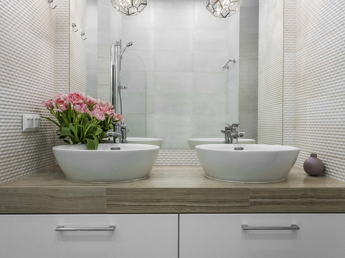 - Потолок: ГКЛ, ламинат, натяжная конструкция с полотном ПВХ, керамогранит