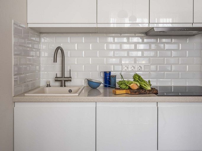 - Стены: пазогребневые блоки, штукатурка, ламинат, ГКЛ, облицовочная плитка